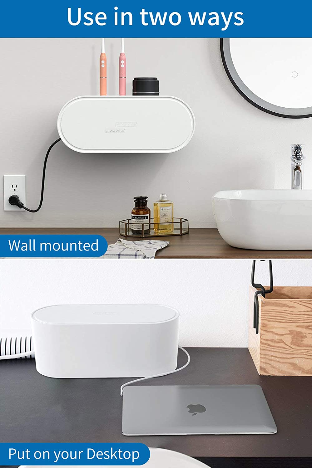 NTONPOWER Wall Mounted Cable Storage Organizer Box - Hide All Electric Wires & Power Strips in STYLE!