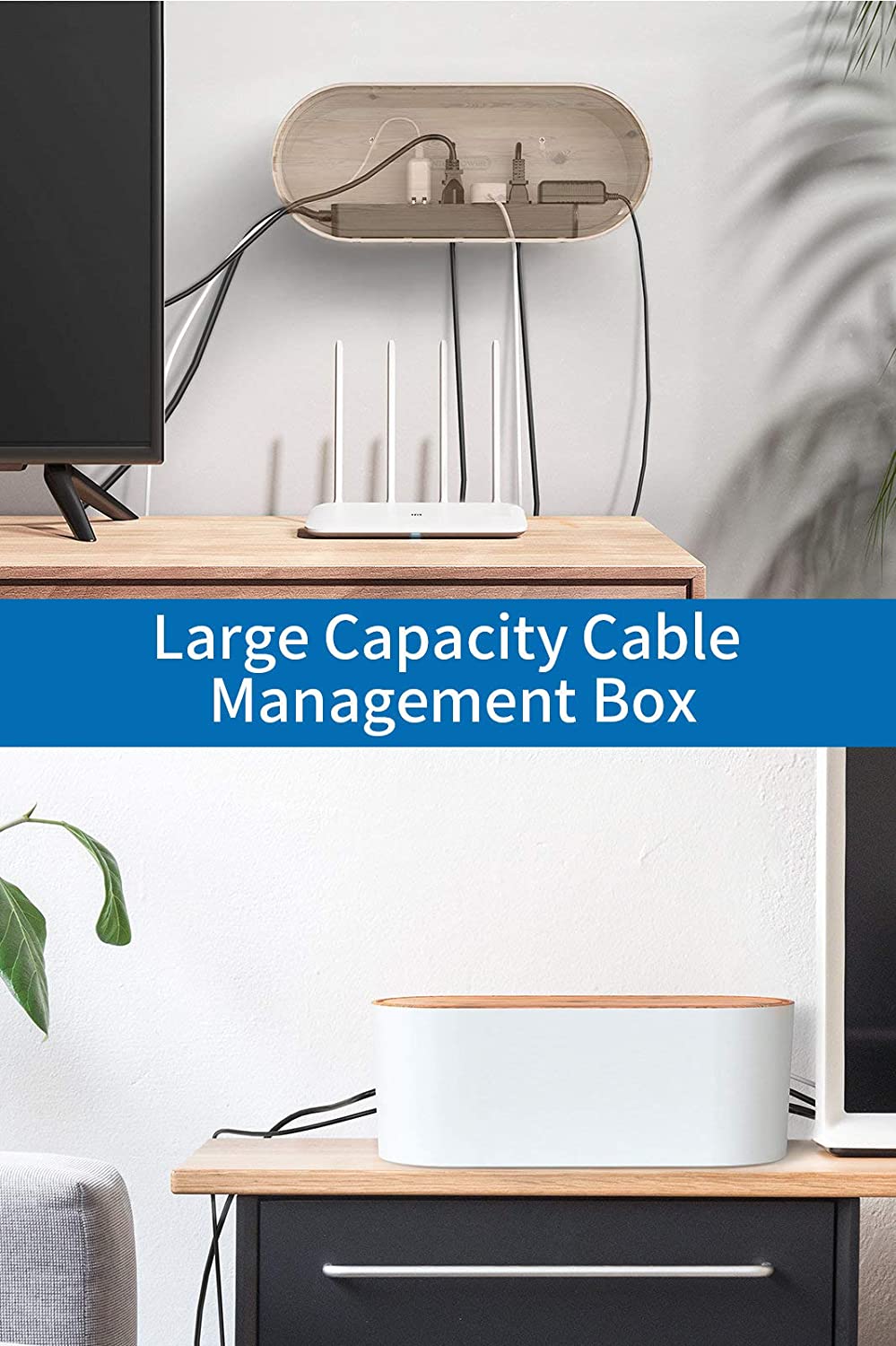 Medium Size Cord Management Box: 14.1" x 5.39" x 5.9". Organize your messy cables of power strip, adapters, USB hubs, tidy desktop or floor.