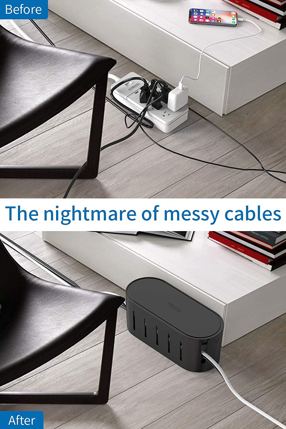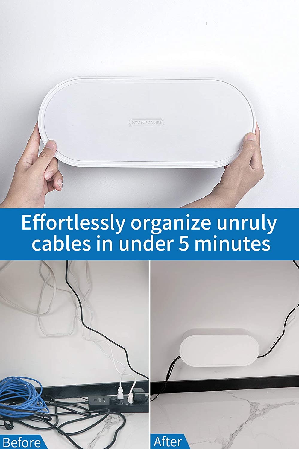NTONPOWER cable management boxes can conceal unsightly clusters of charging cables while allowing easy access when you need it.