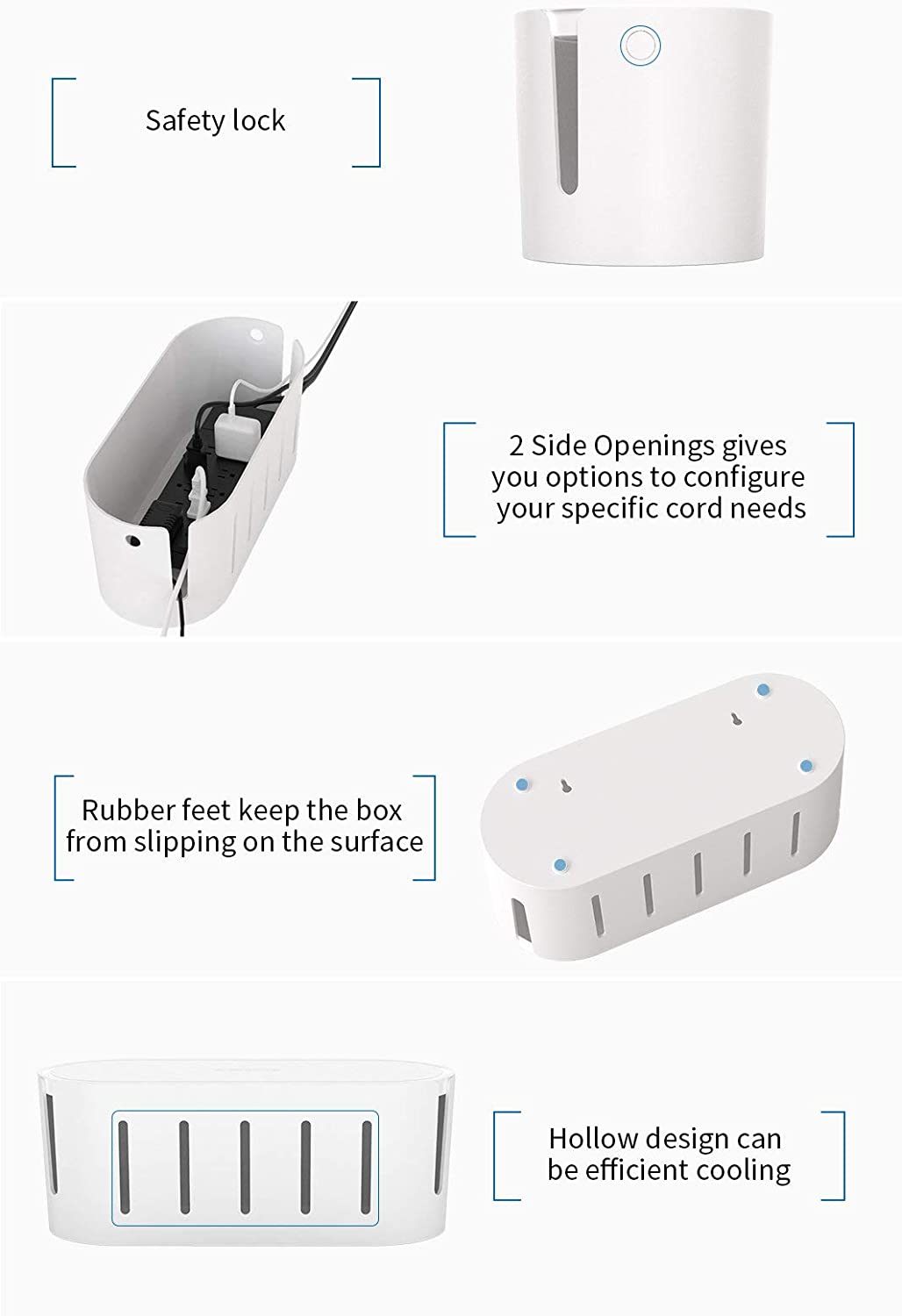 Improve Aesthetics and Reduce Accidents : This cable box combined with an effective lock lid will protect your naughty kids and pets from touching or chewing the power cables as well as other electrical equipments.