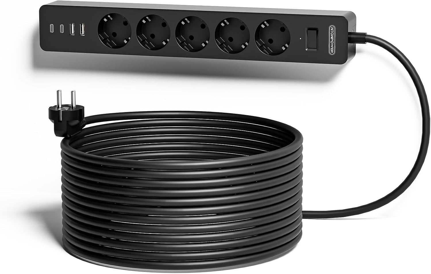 Ntonpower EU Power Strip 3 Socket 2 USB Overvoltage Protection
