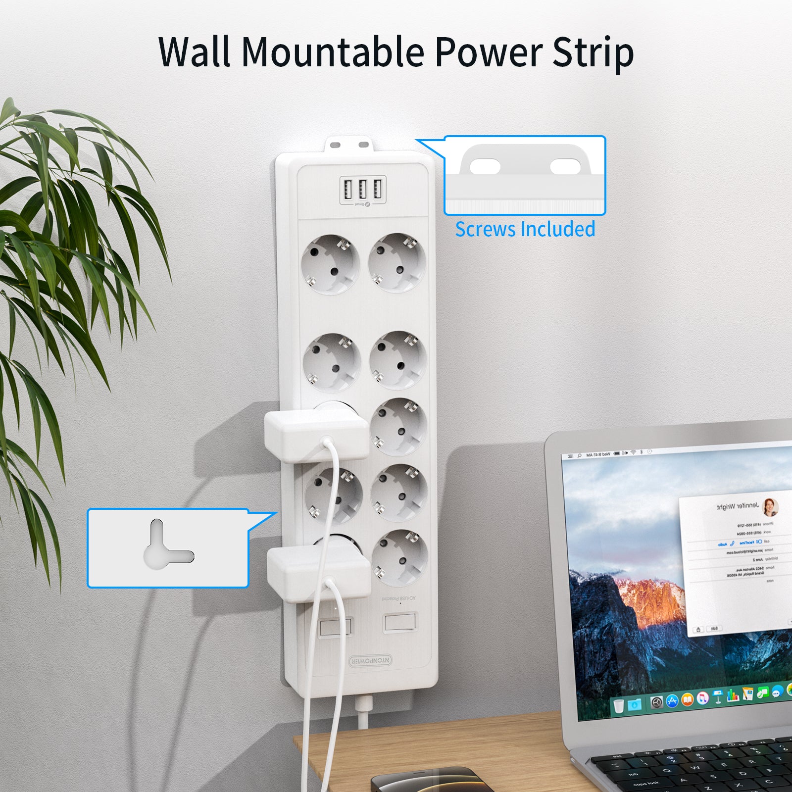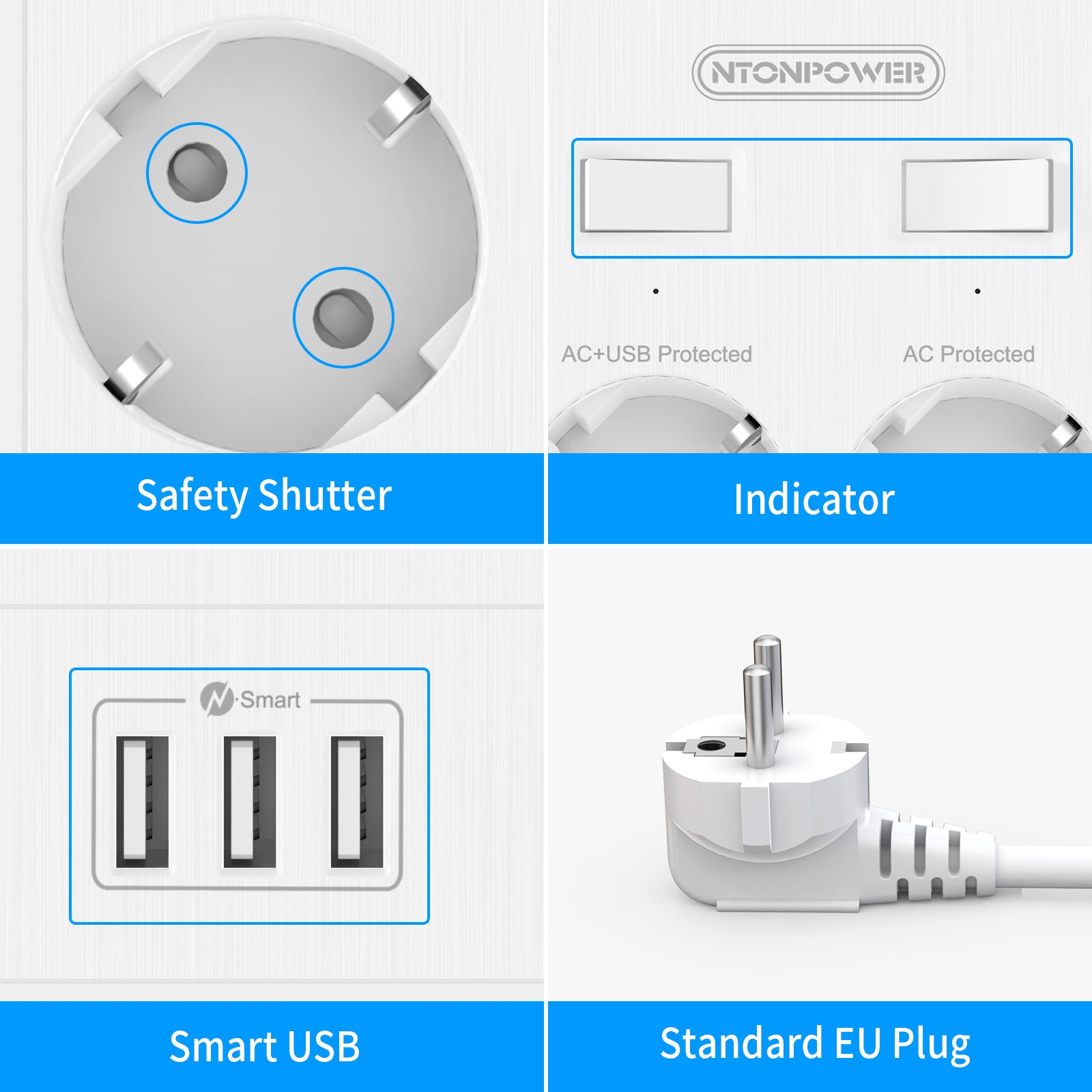 Ntonpower EU Surge Protection Power Strip 10 Outlets 3 USB-A