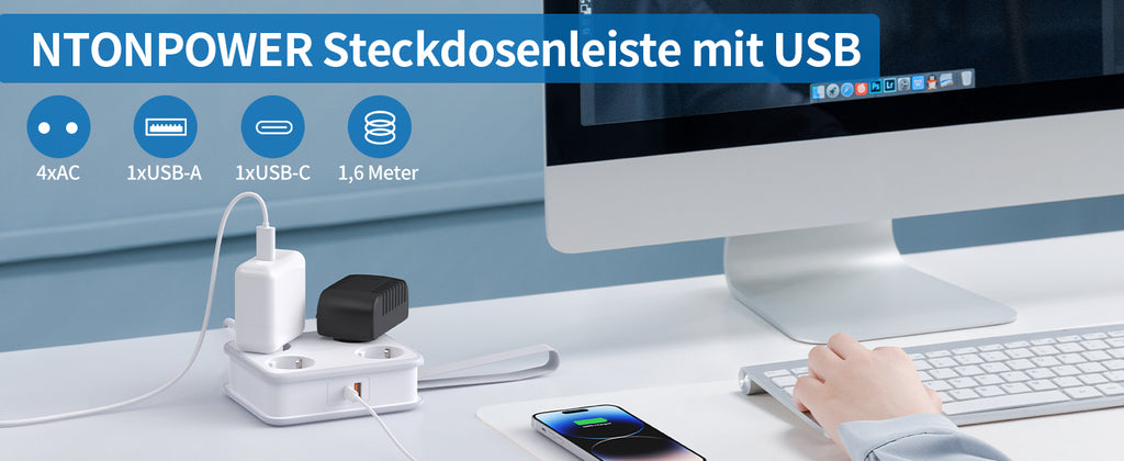 4 Fach Steckdosenleiste USB C Mehrfachsteckdose USB
