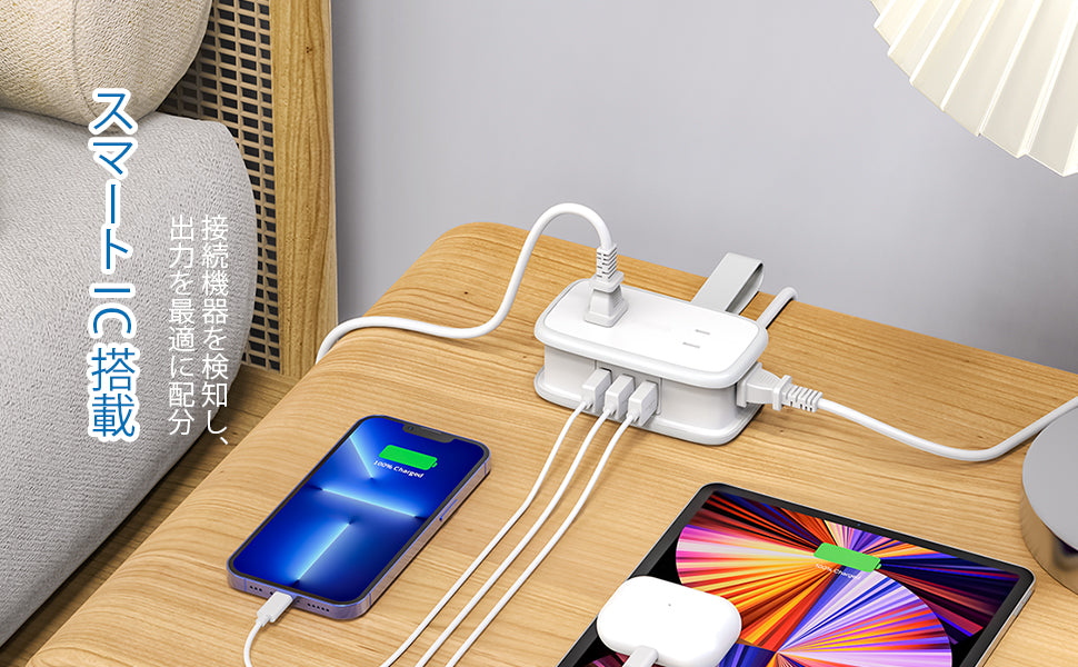 The USB port is equipped with "Automatic Identification IC", so it automatically detects the current at the end of the connection. Identify the connected device and place the optimal current. It has a power tap with 7 USB ports, 4 AC outlets, 3 USB-A ports. It can charge 7 devices simultaneously. The outlets are up to 15A (1875W), so please be careful when connecting large power electrical equipment such as dryers or electric stoves.*Please note that the total output is up to 1875W