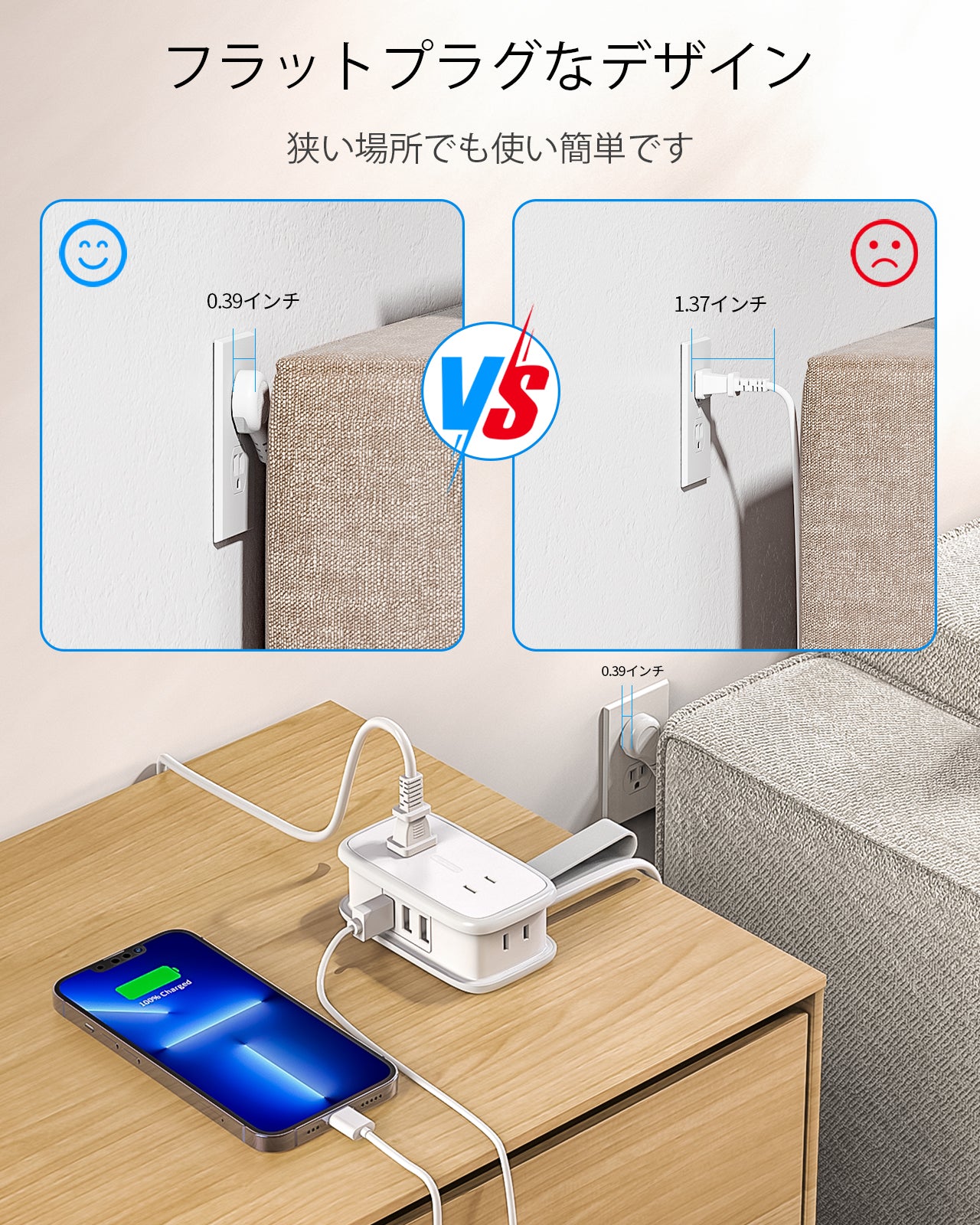 0.39 inch thick flat plug, suitable for tight spaces