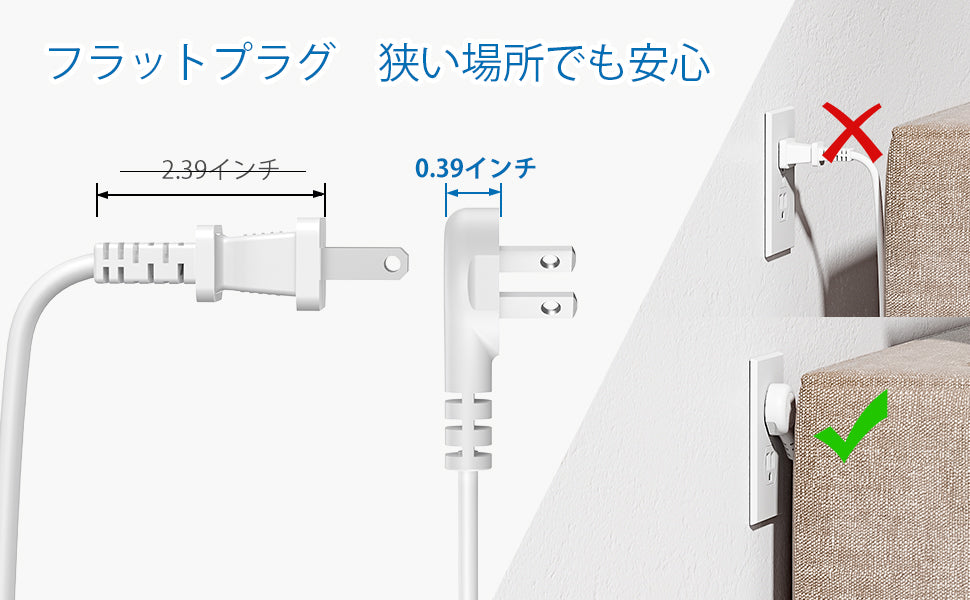 Uses a thin plug that is only 0.4 inches (1 cm) thick, and thinner than regular plugs.Suitable for tight spaces: In case your hotel room outlets are far away from bed and the number is low, this extension coat power tap is convenient and helpful.