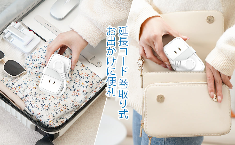 - Retractable Extension Cord 3.3 ft (1 m) - Flat plug so it can be used in tight spaces. The extension cord is about 3.3 ft (1 m) so that the power cord can be stored around the side of the main unit, and it is equipped with a rubber sleeve for a neat fit. Even if you put it in your bag, it will not be in the way of carrying