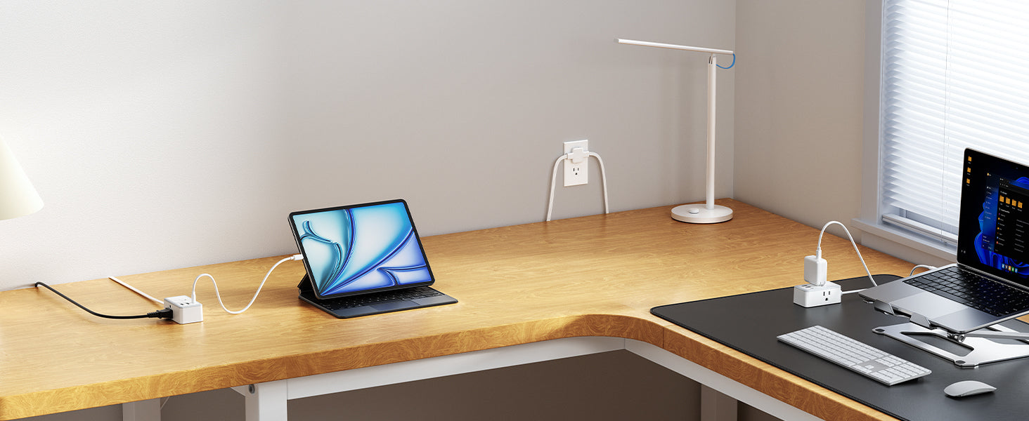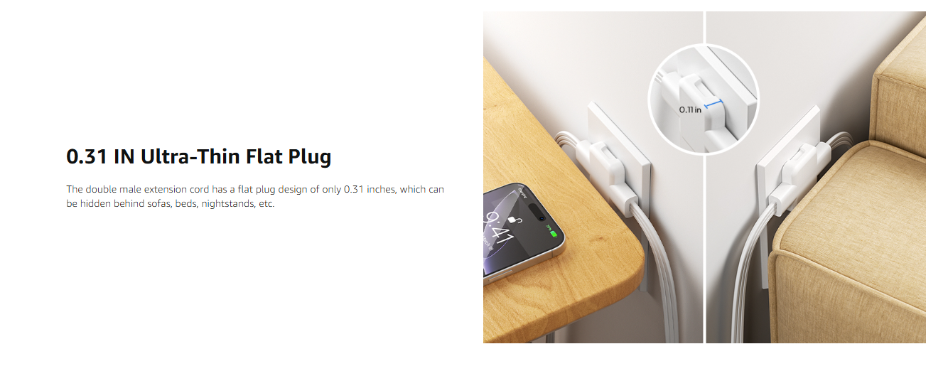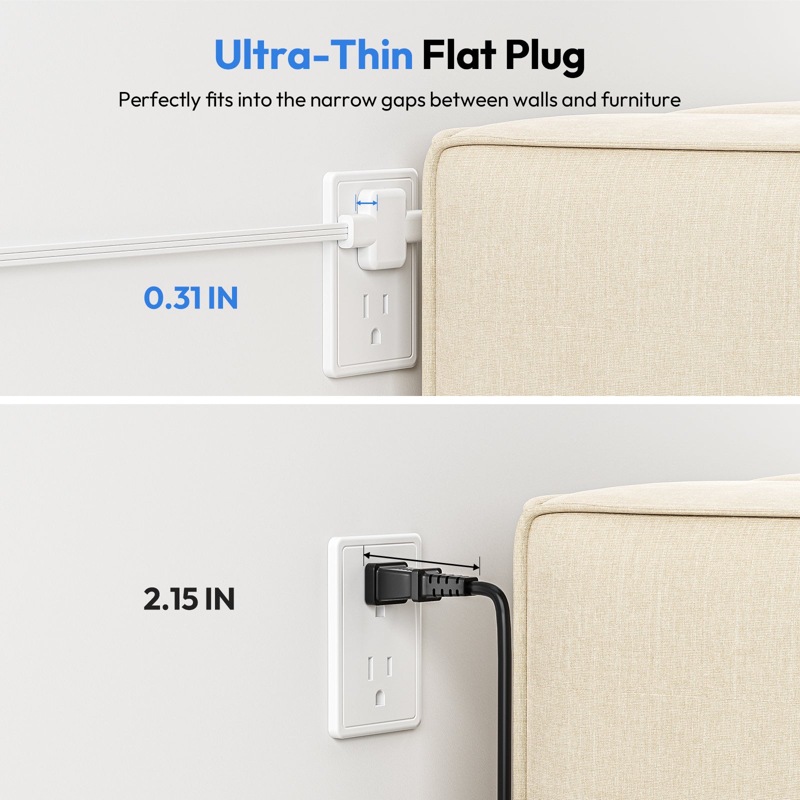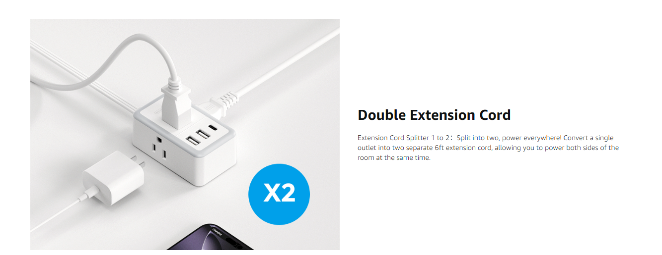 NTONPOWER Double Extension Cord 12 FT Power Strip 3 Outlets 3 USB