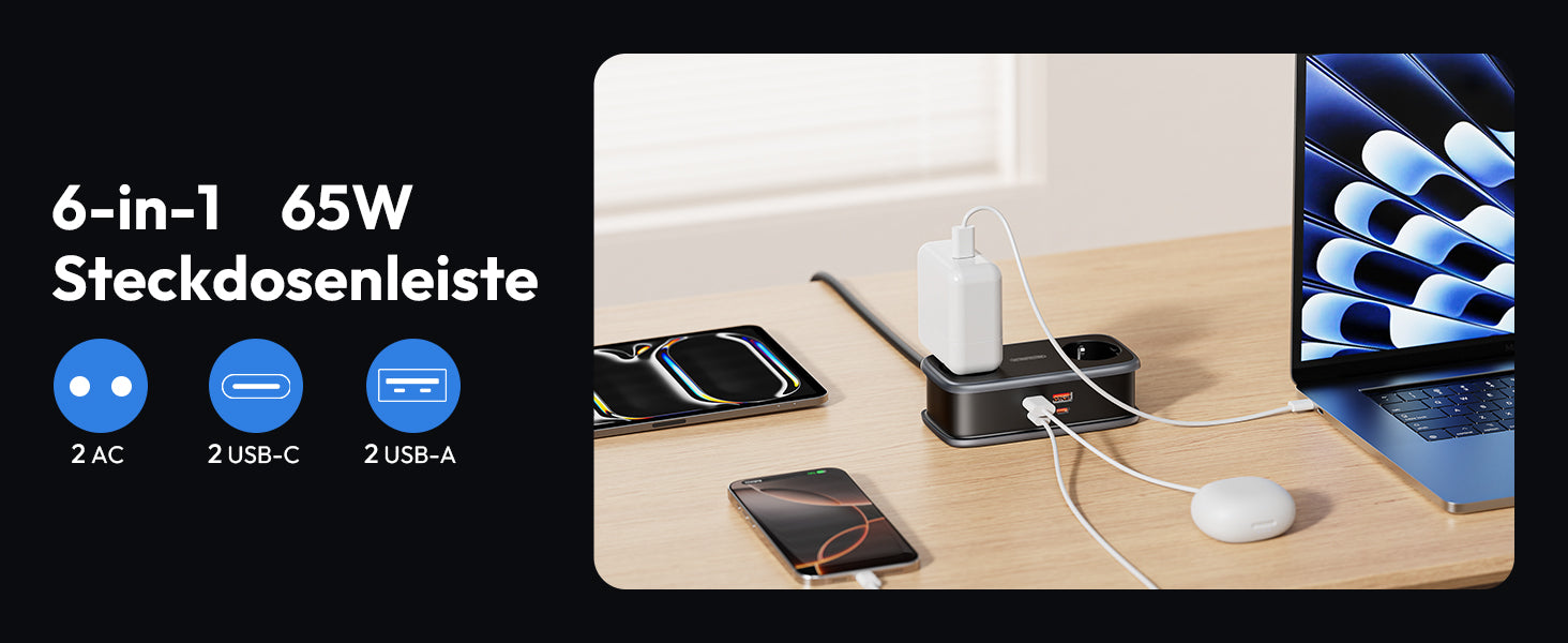 Ntonpower EU Pocket Power Strip 2 Outlets 2 USB-A 2 USB-C 65W GaN