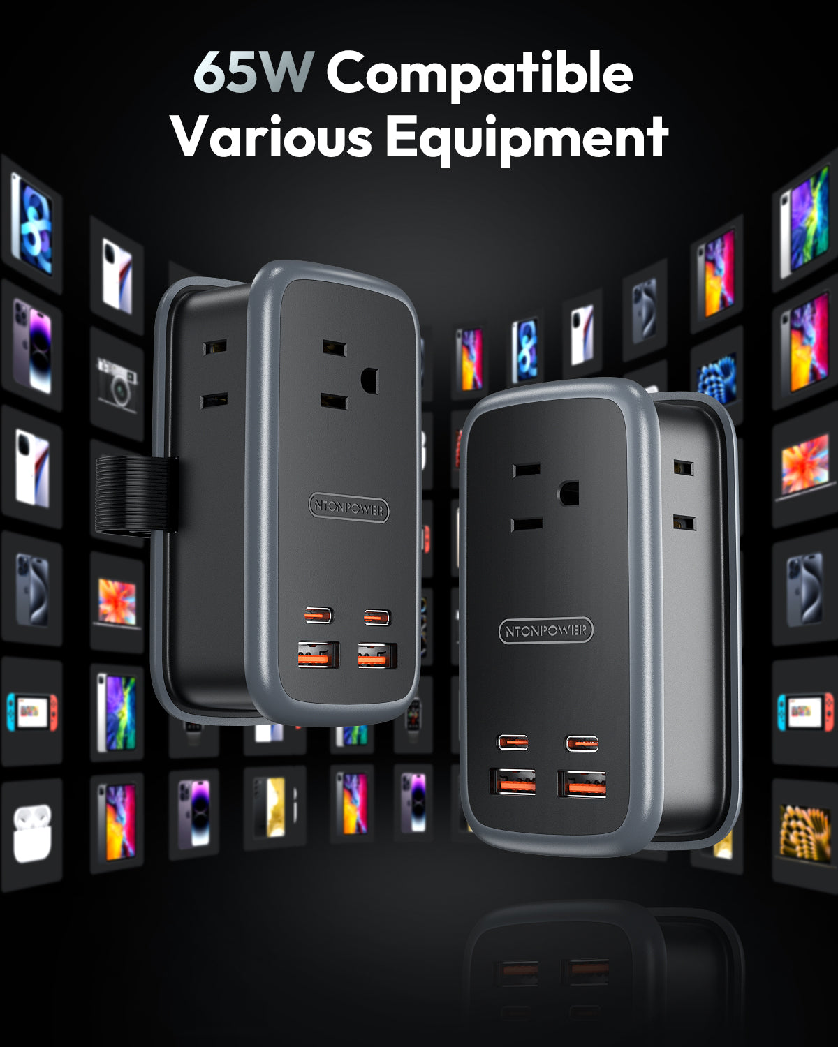 • NTONPOWER GAN Ultra 65W USB Power Strip, 3 Outlets 2 USB-A 2 USB-C