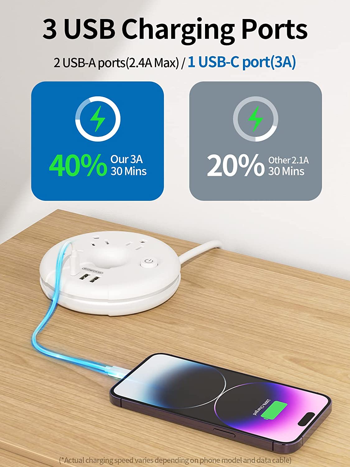 The power cord extension, which reduces weight to 199g while maintaining quality, can be wound for easy storage, and it is equipped with a 15w USB-C charging port, achieving a clever combination of weight and power