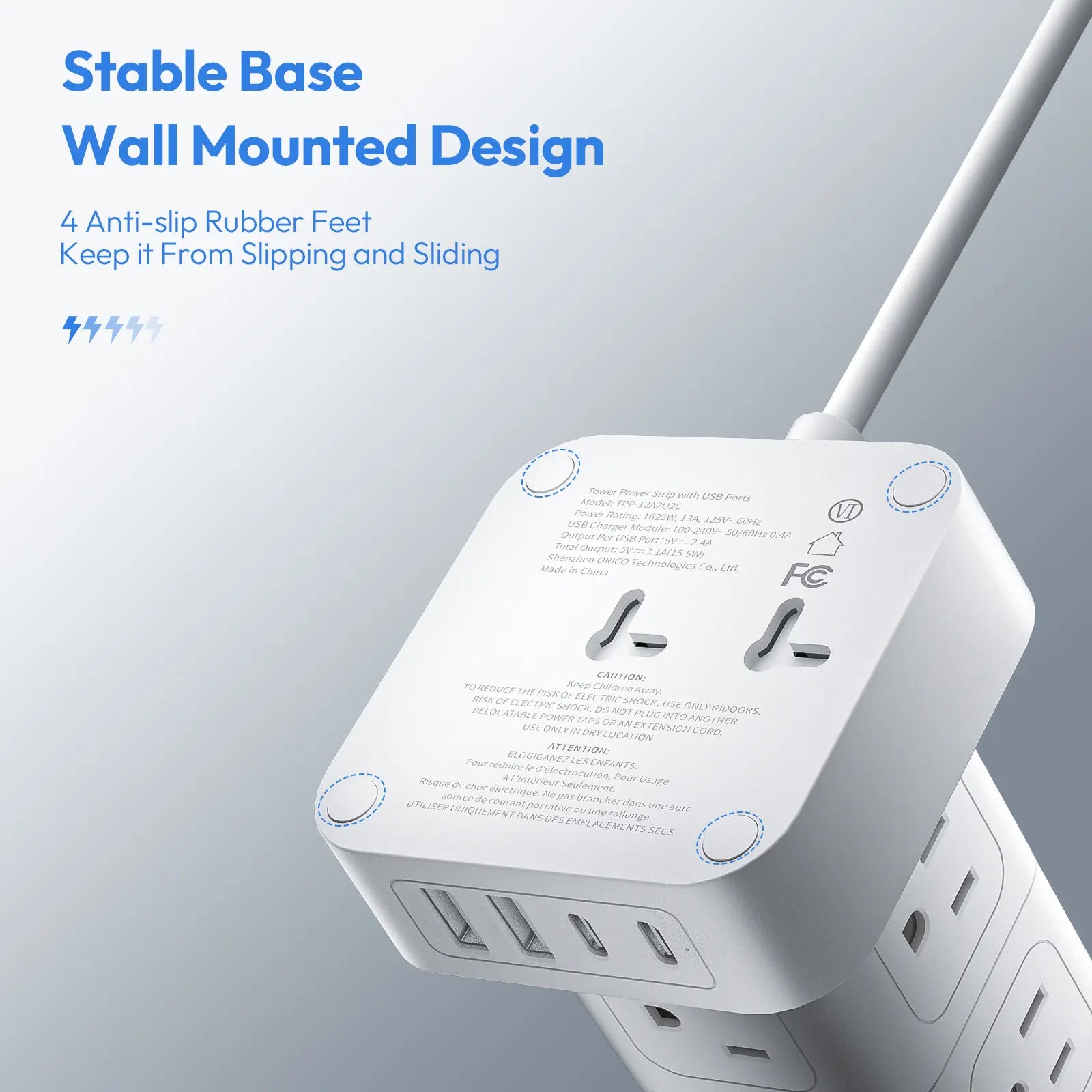 • 【 Power Strip Tower with USB C Ports 】Each USB A port features 2.4A Max output. USB C charging port features 3.1A Max. Built-in smart technology detects charging devices and delivers optimal charging speed automatically, compatible with most USB devices. 2 types of USB ports are compatible with all cell phones, tablets, earphones, etc.