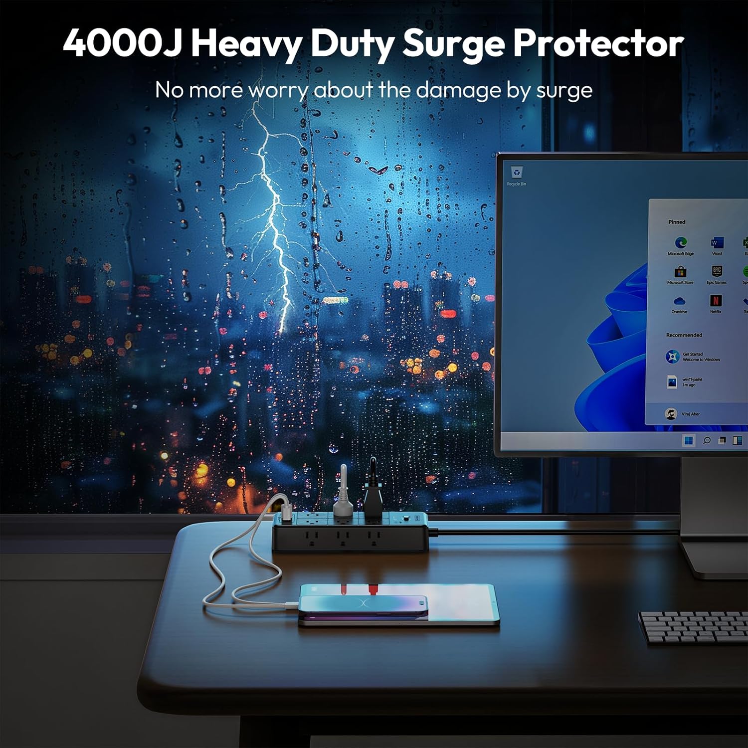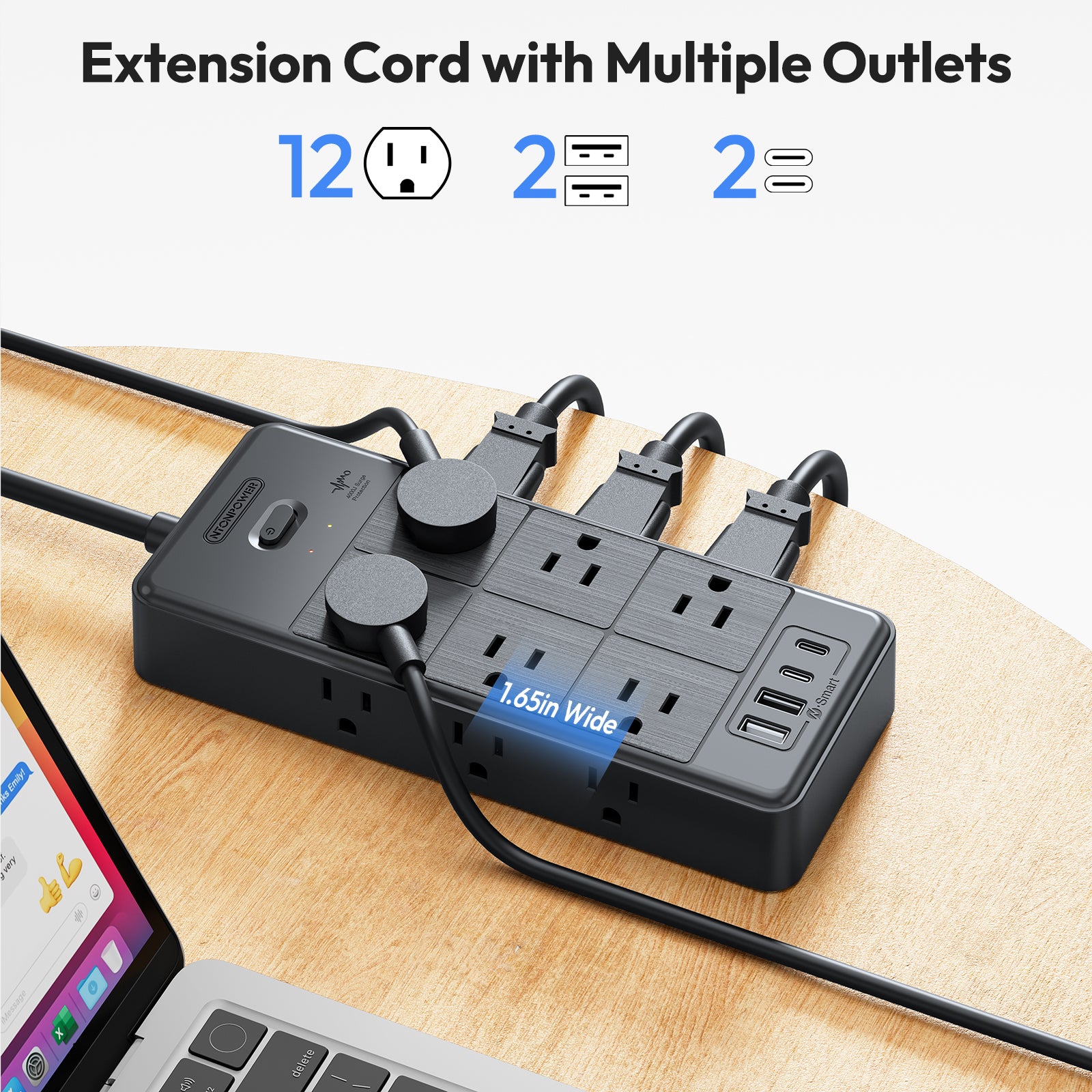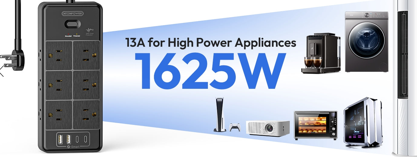• Ntonpower Surge Protector Power Strip 12 Outlets 2 USB-A 2-USB C(EAN:6941833922524)