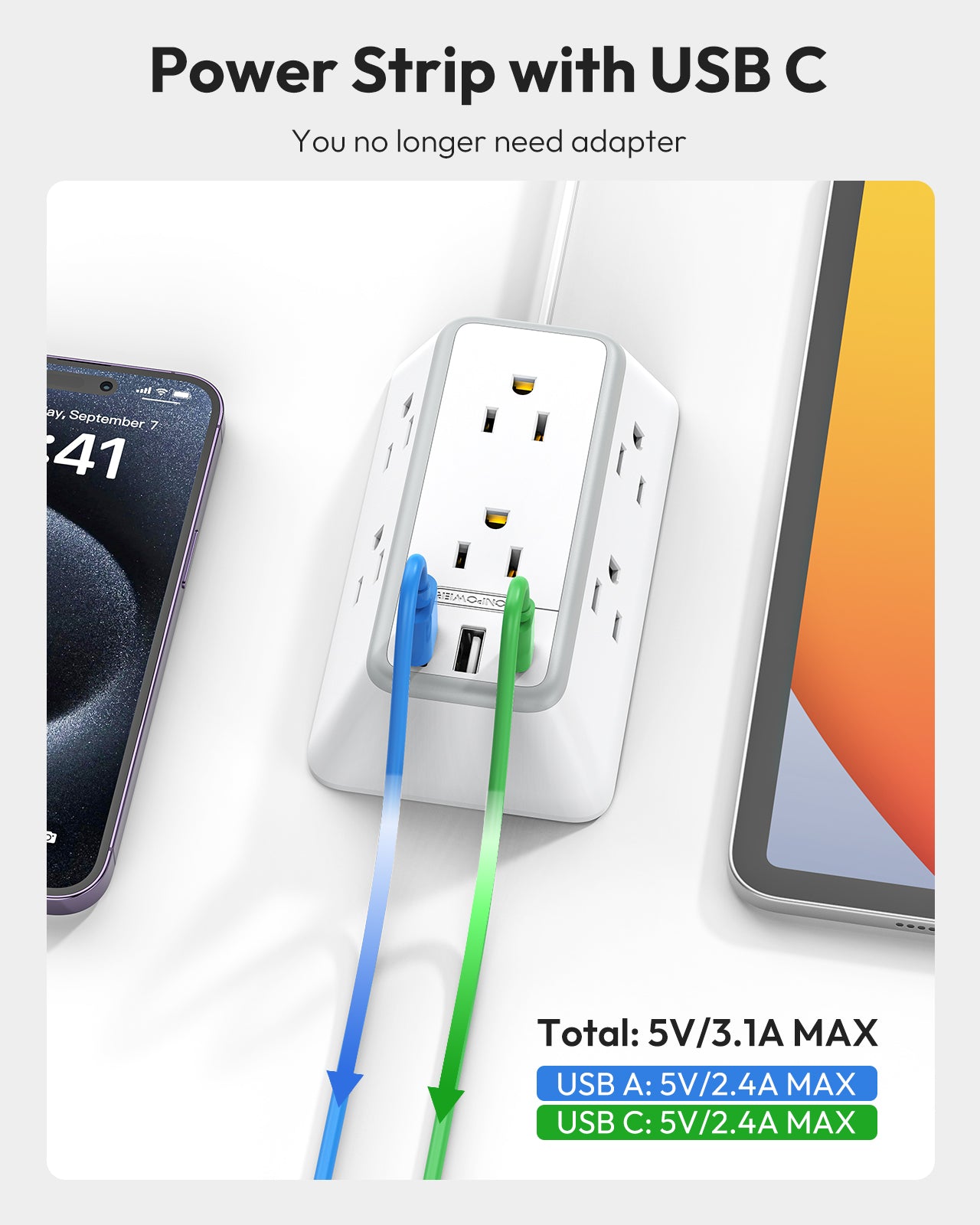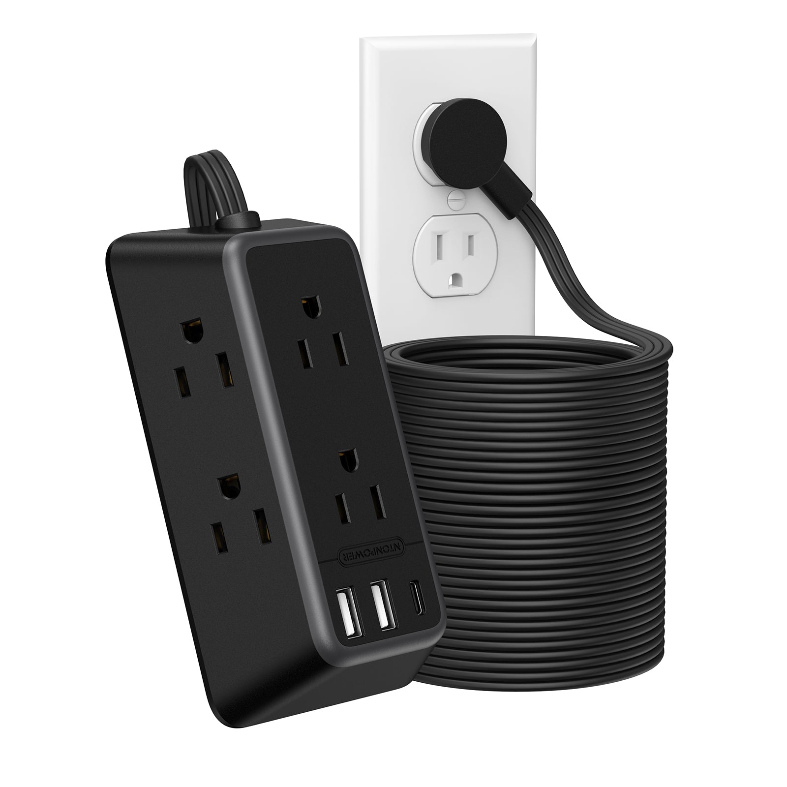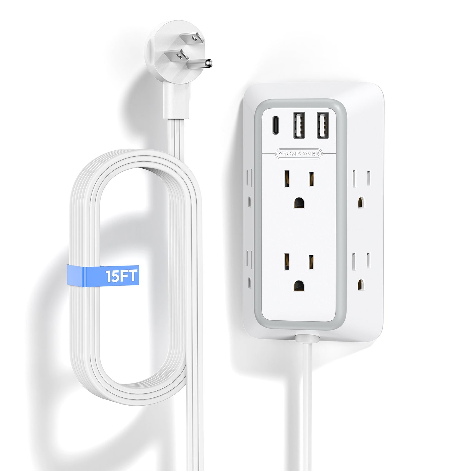 NTONPOWER 3-Sided Power Strip 6 Outlets 2 USB-A 1 USB-C