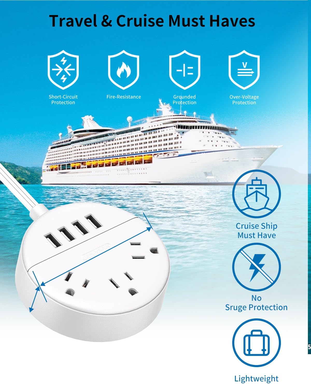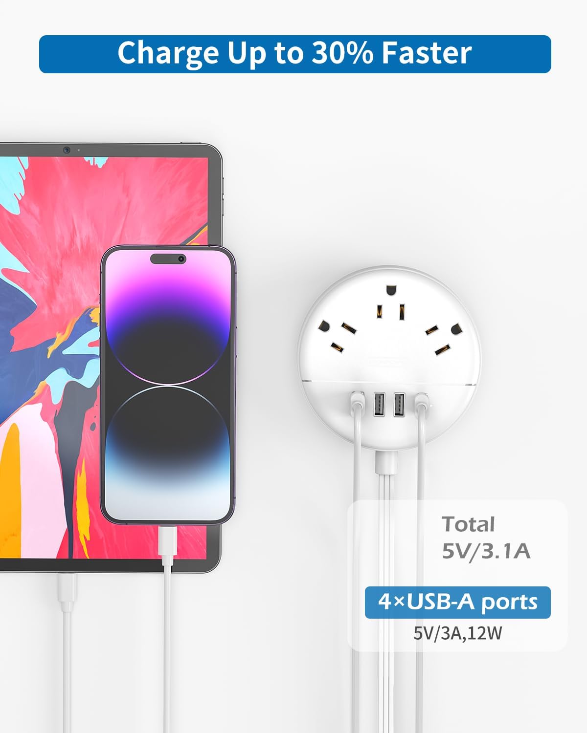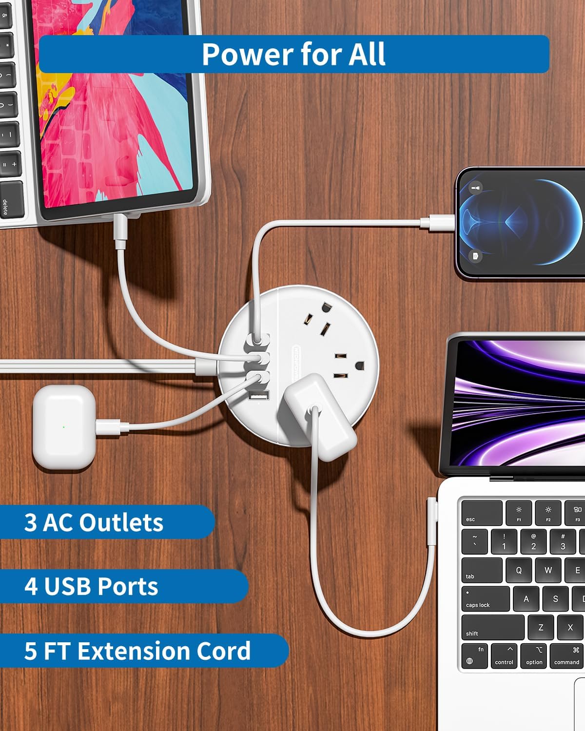 This power strip has a space-saving small circle size, easy to pack in a bag or luggage, and adds extra outlets & USB ports to charge your devices.