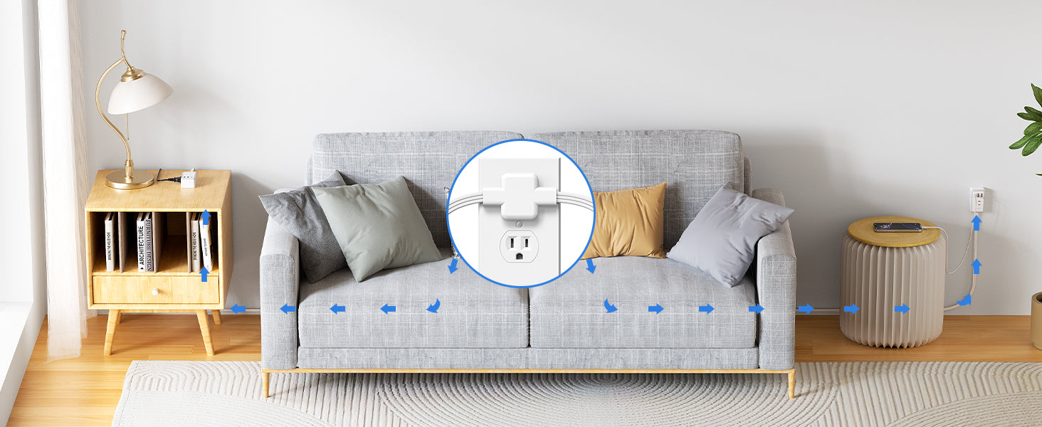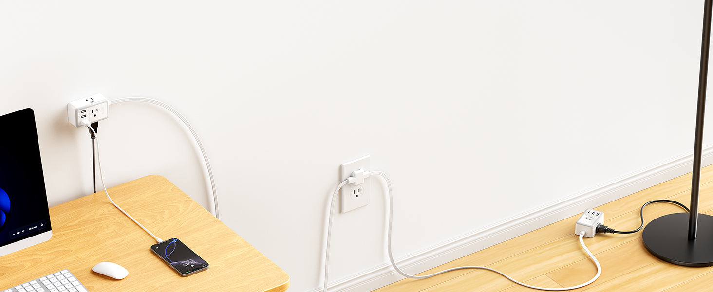 NTONPOWER Double Extension Cord 12 FT Power Strip 3 Outlets 3 USB