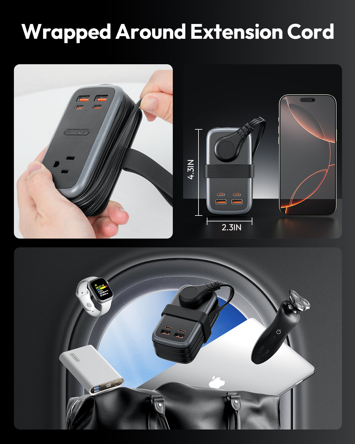 NTONPOWER GAN Ultra 65W USB Power Strip, 3 Outlets 2 USB-A 2 USB-C