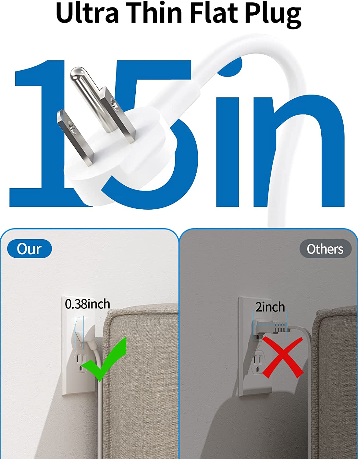 ?4 Thinner/Safer flat plugs reduce wasted space