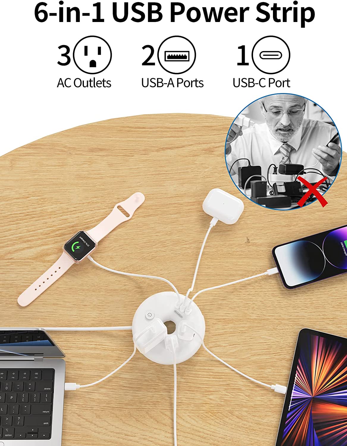 6 in 1 donut travel power strip