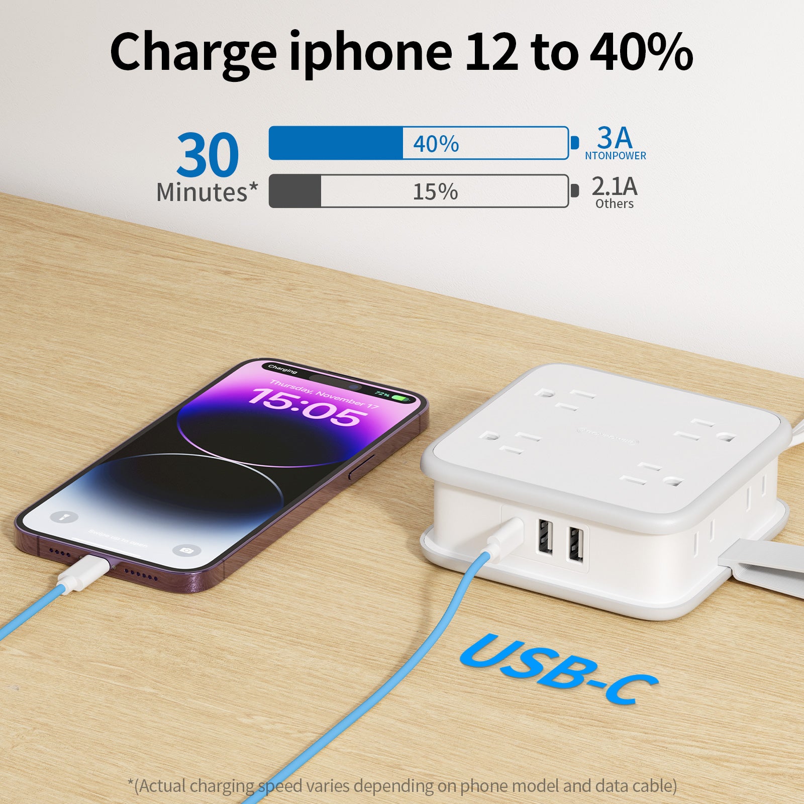 Ntonpower Power Cube 8 Outlets 3 USB Ports Flat Cord