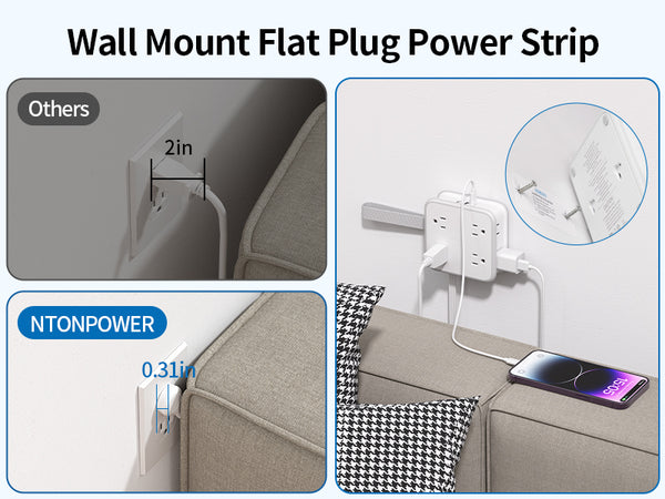 NTONPOWER Flat Plug Power Strip with Wrapped Flat Cord