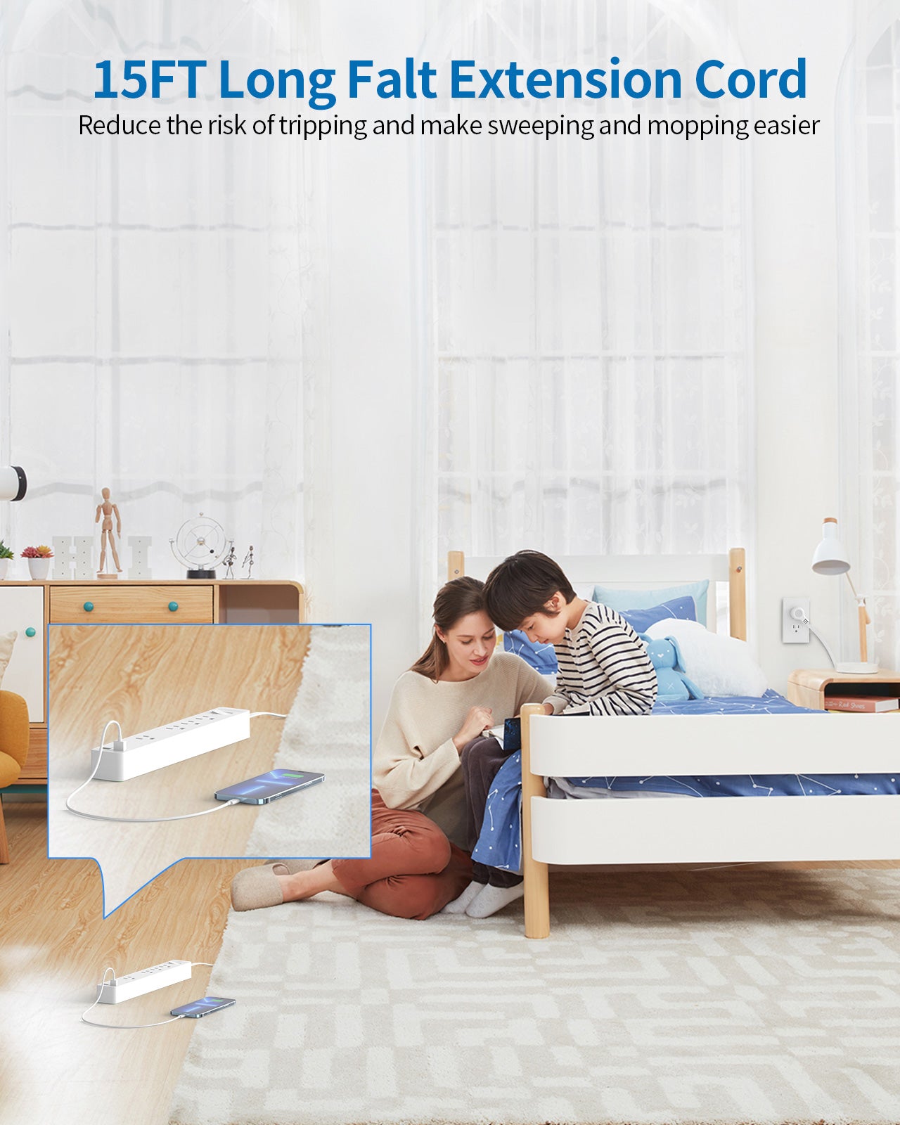 15Ft extension cord extends the long cord power strip the to table or other place easily where you need power outlets or USB charging ports.