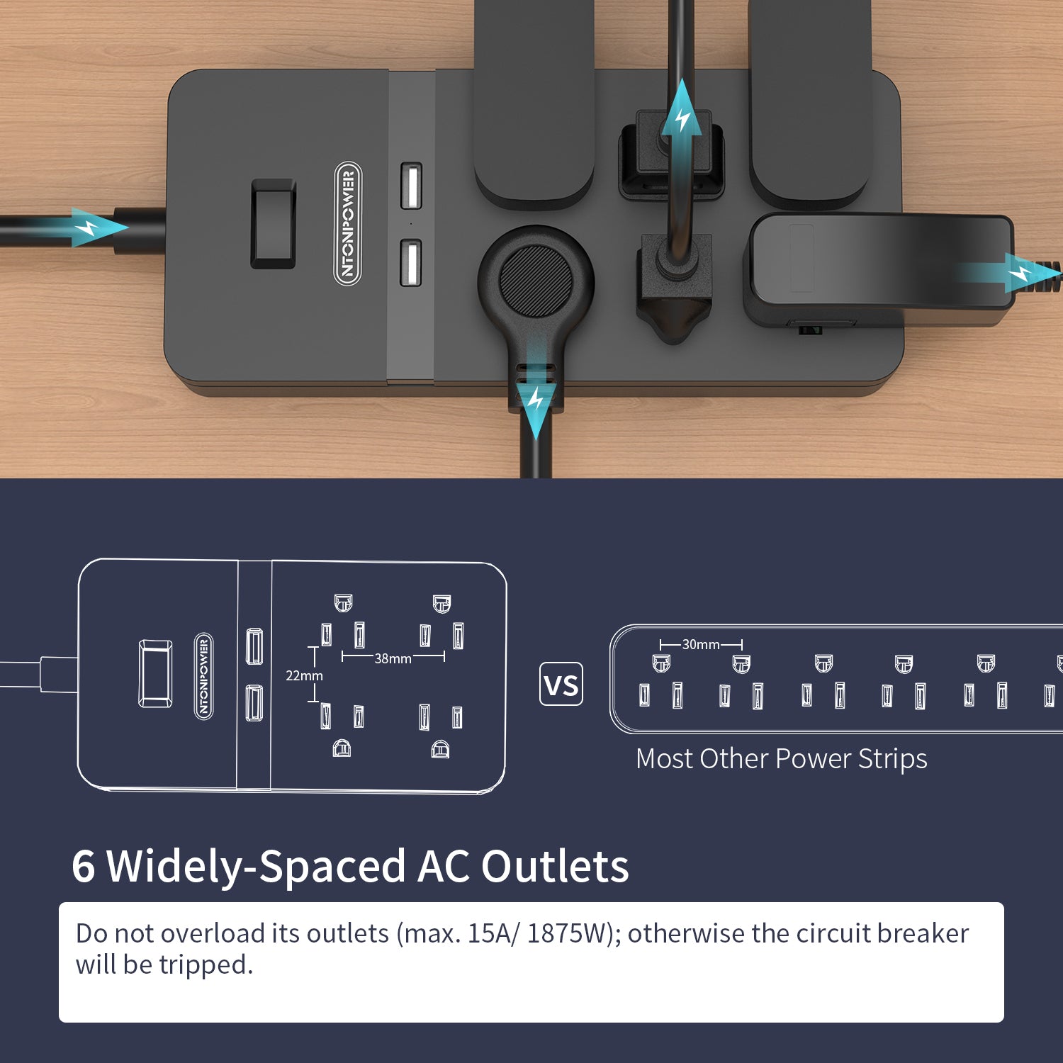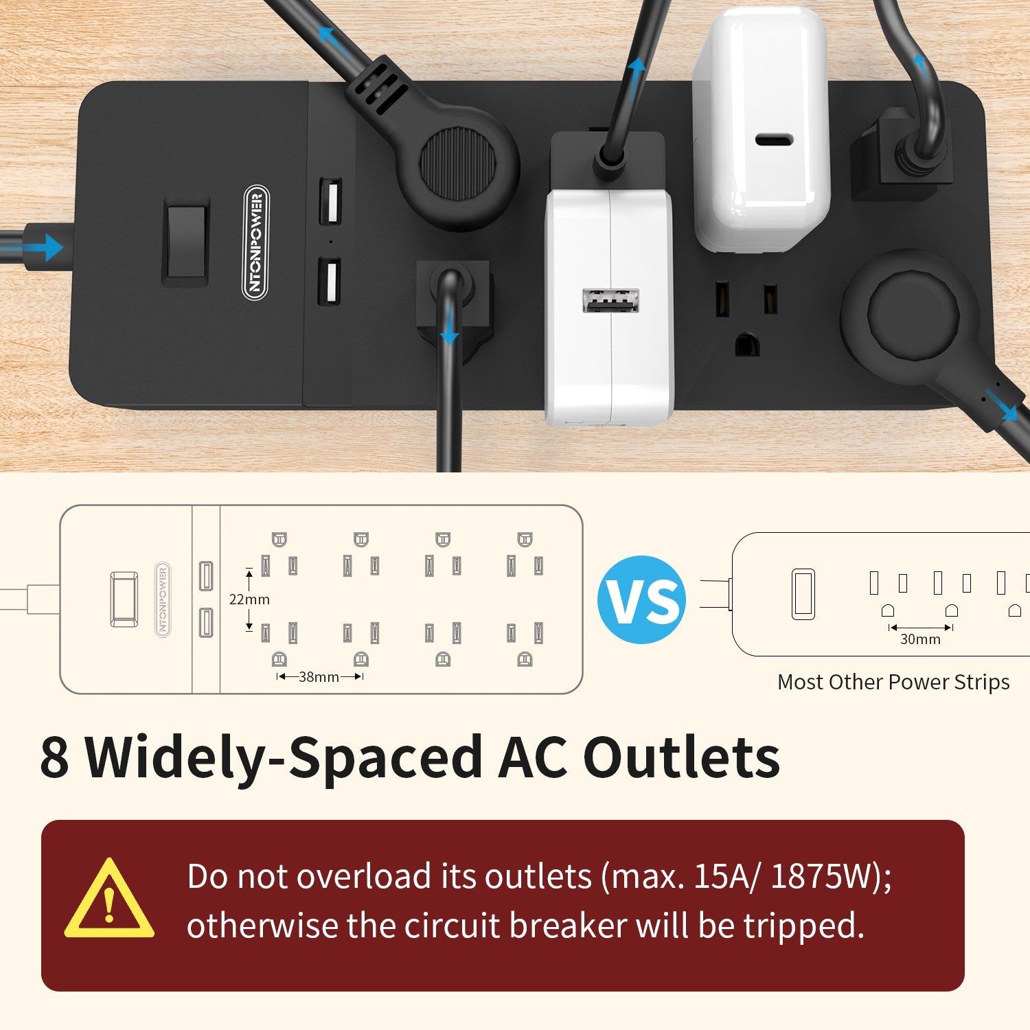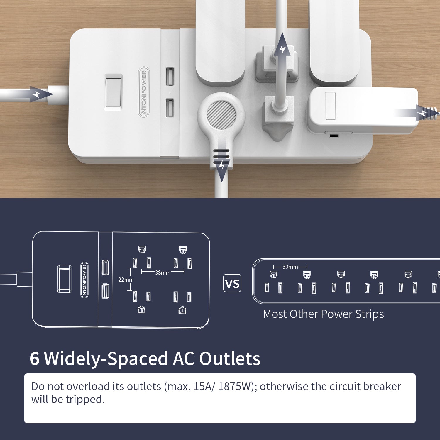 Ntonpower Surge Protector Power Strip 10 Outlets 2 USB