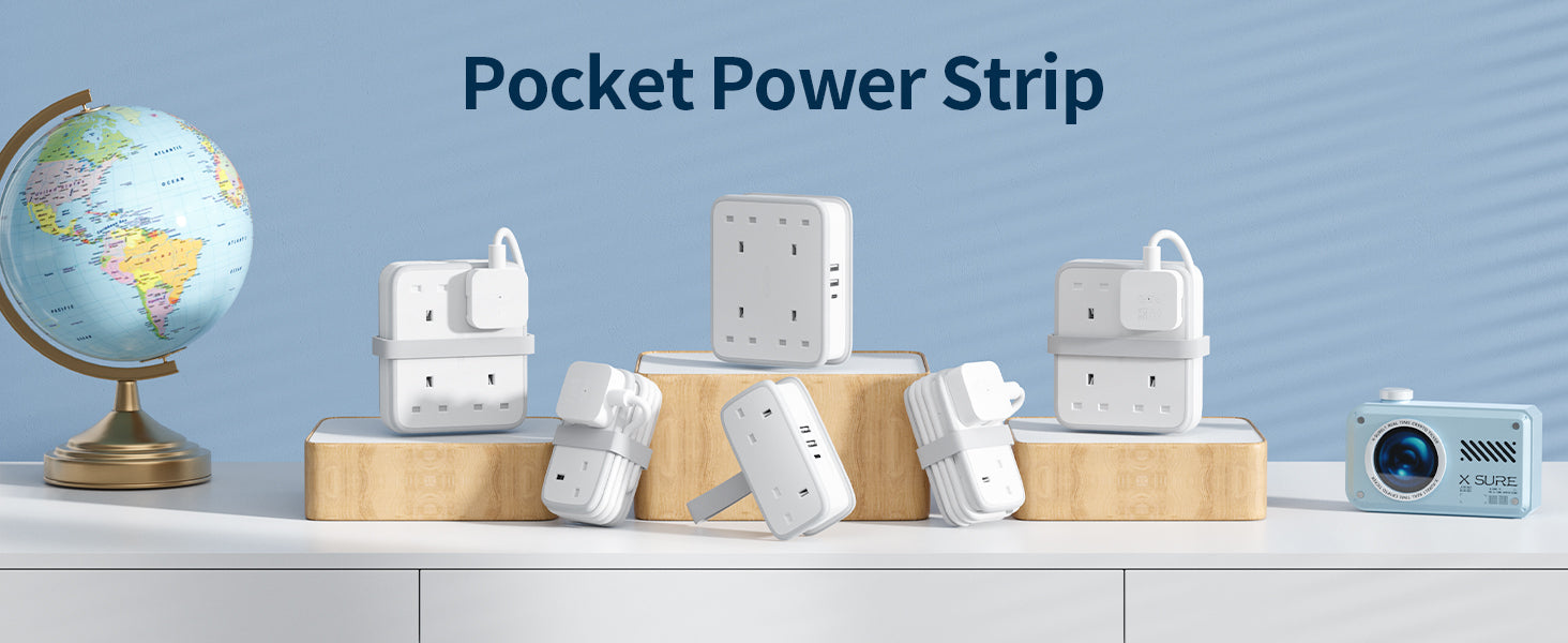 Ntonpower UK Pocket Power Strip 2 Outlets 2 USB-A 1 USB-C Travel & Hotel