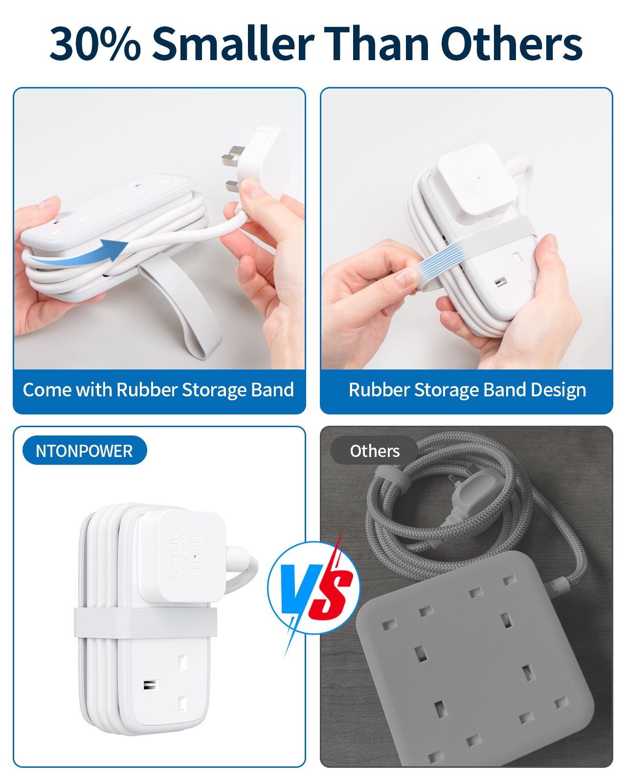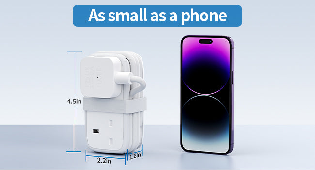 NTONPOWER travel extension lead is only 0.7 pounds, about the weight of a mobile phone, and can be comfortably placed in your palm or pocket.