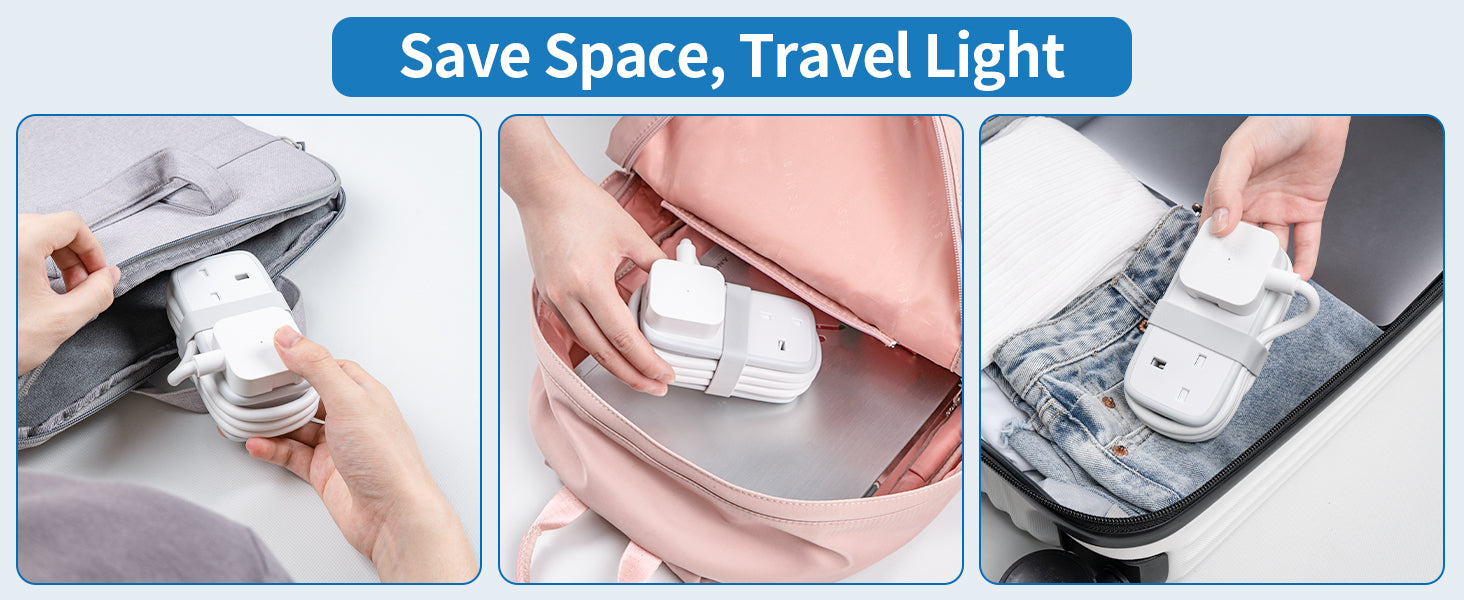 NTONPOWER travel extension lead is only 0.7 pounds, about the weight of a mobile phone, and can be comfortably placed in your palm or pocket.