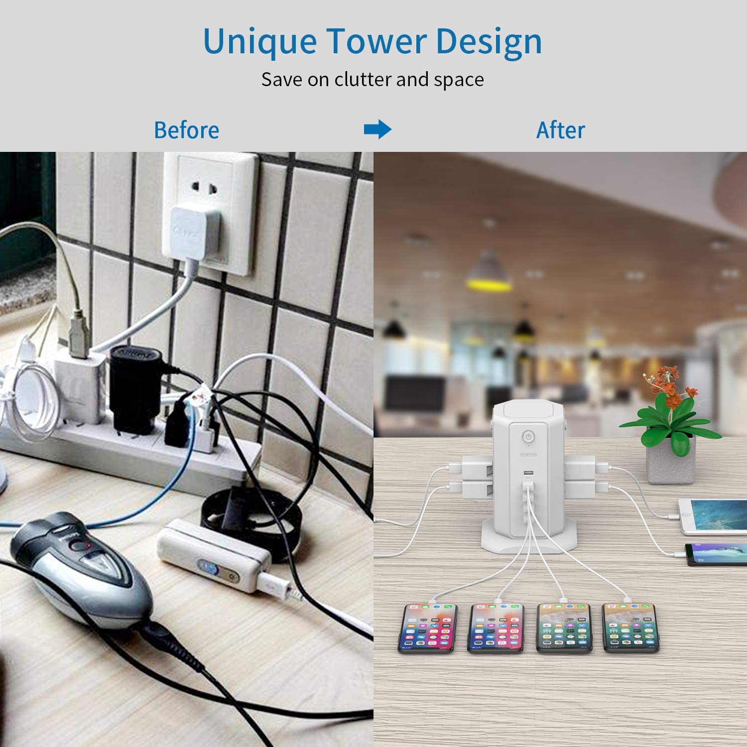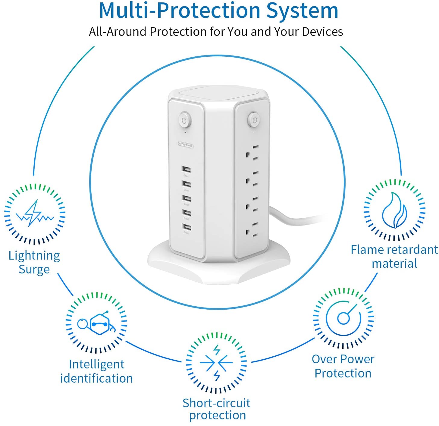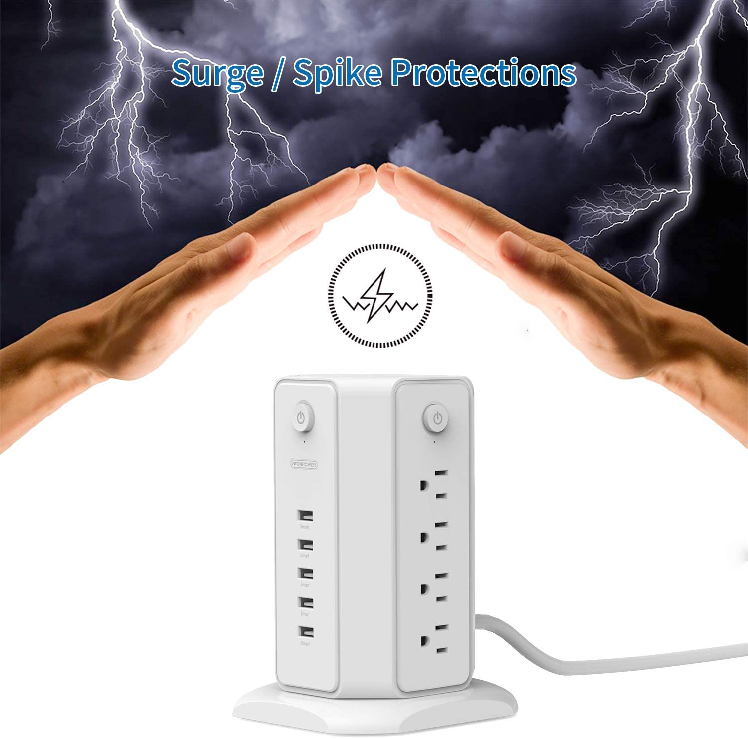 Ntonpower 1080J Surge Protector Power Strip Tower 8 Outlets 5 USB