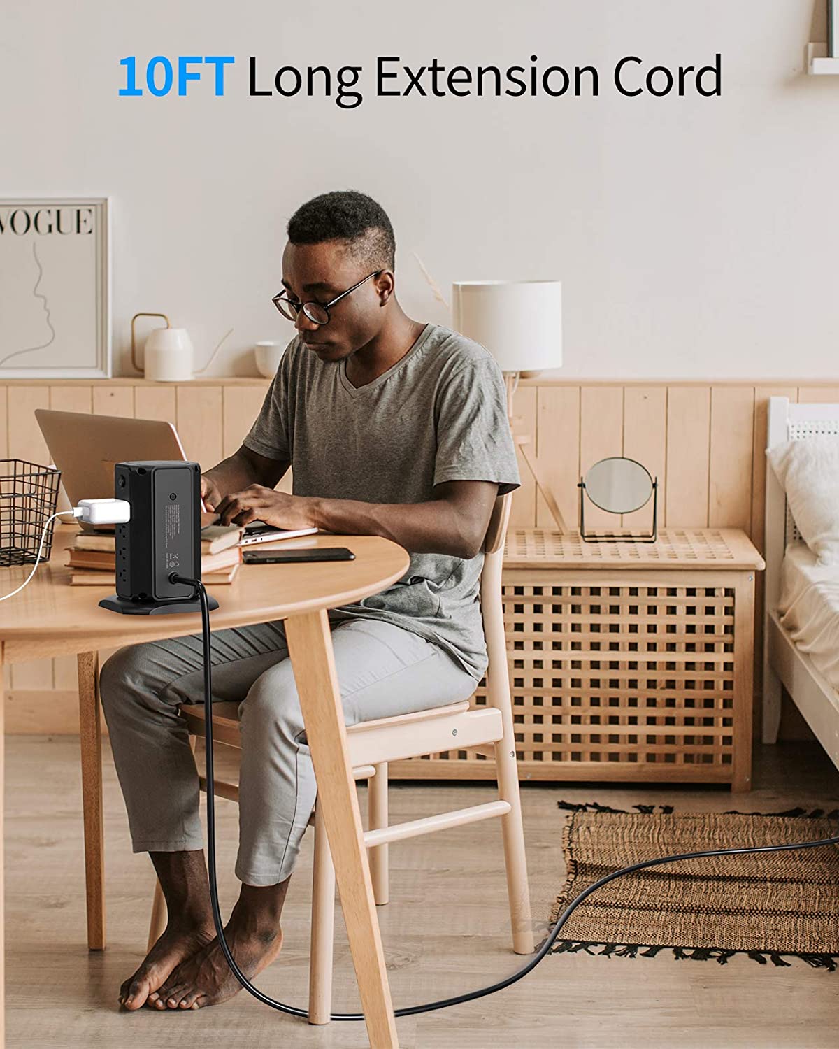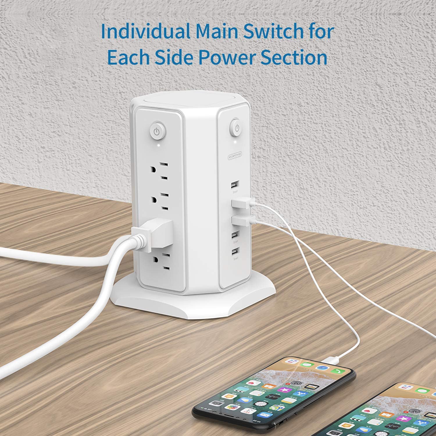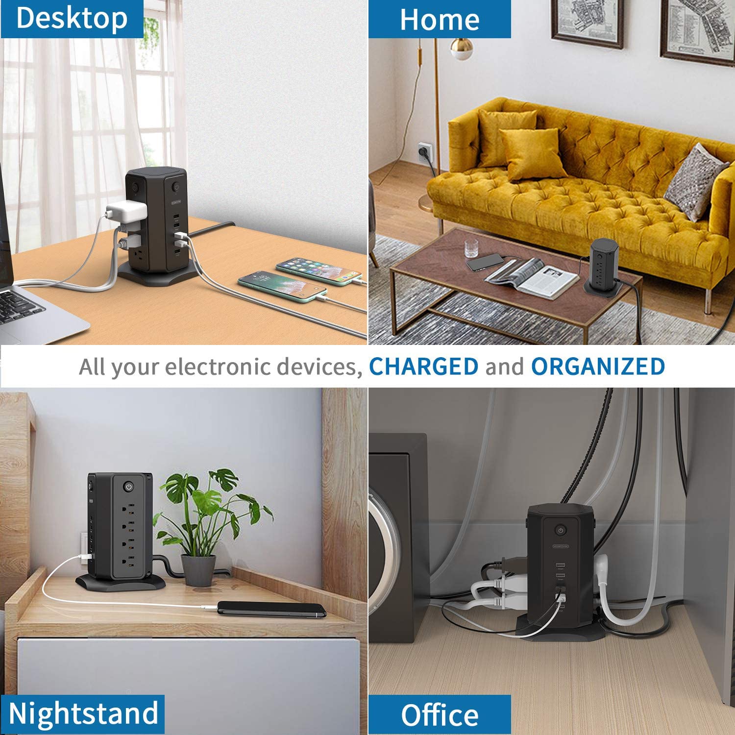 Ntonpower 1080J Surge Protector Power Strip Tower 8 Outlets 5 USB