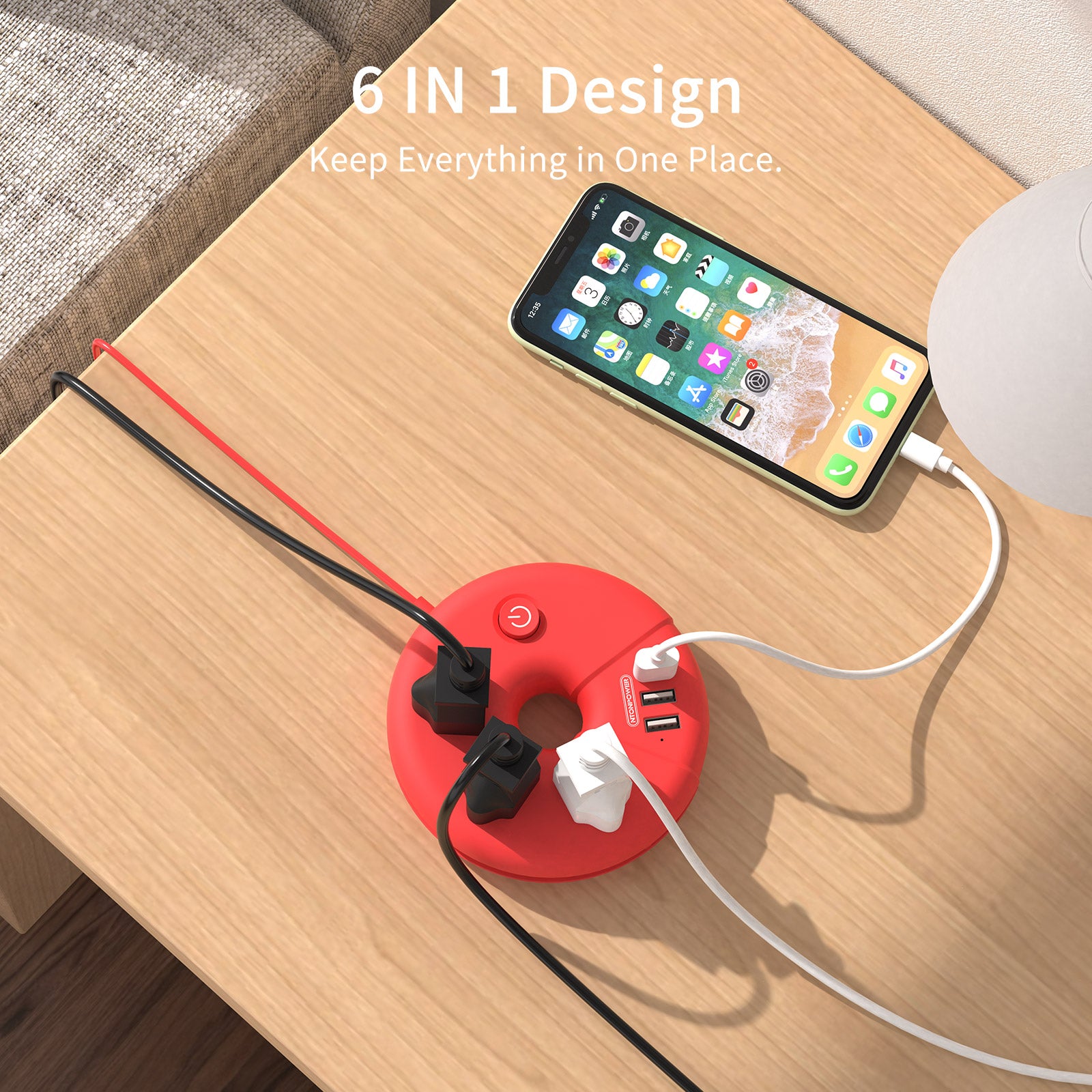 Ntonpower i-Donut Power Strip 3 Outlets 3 USB Small&Travel