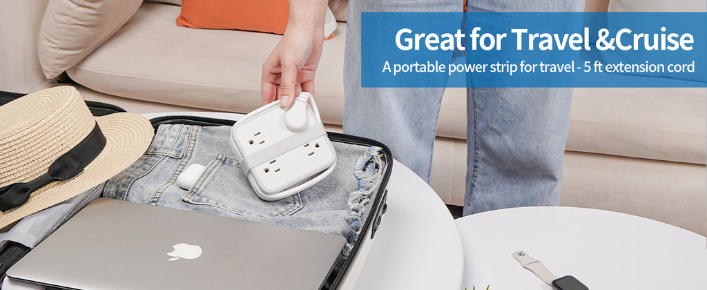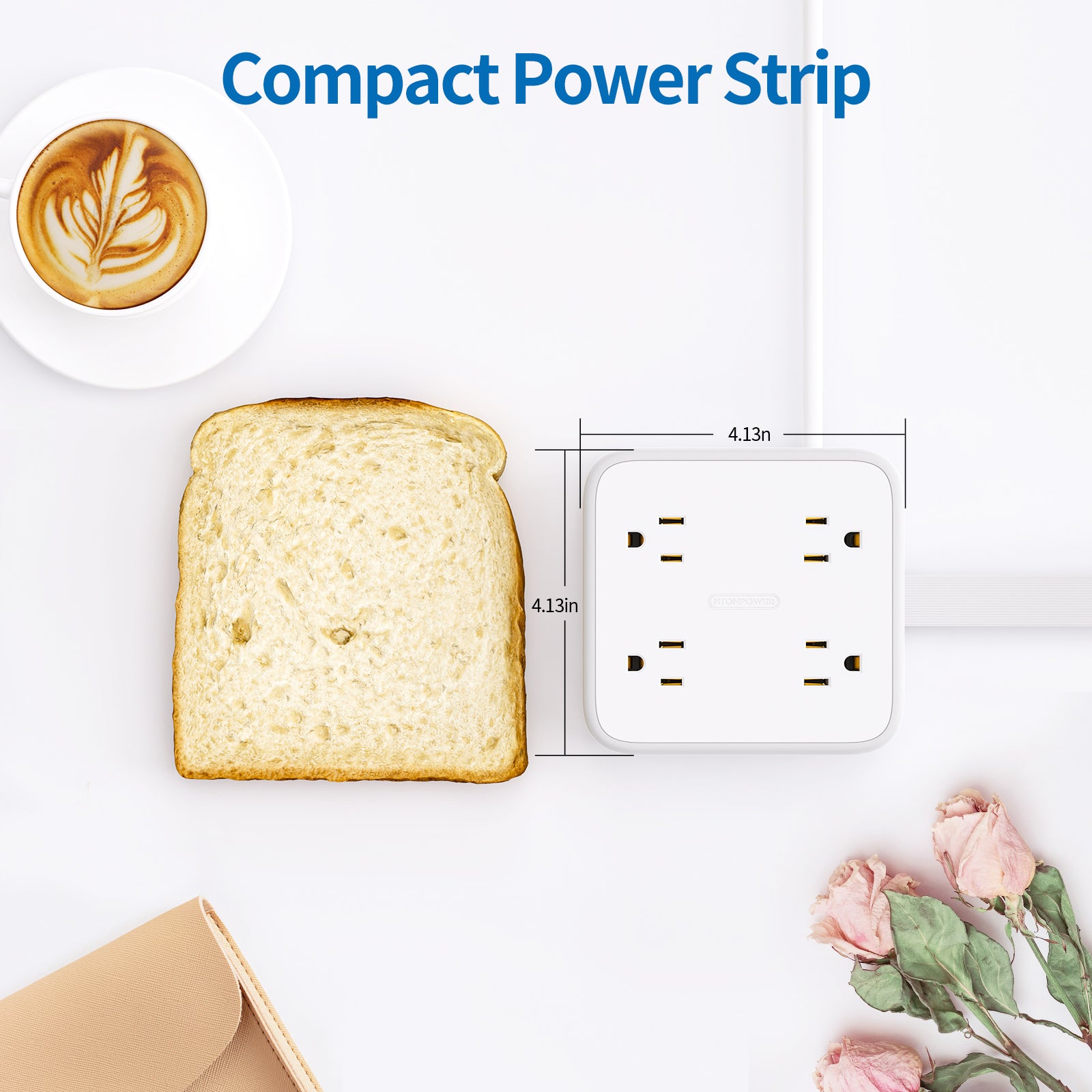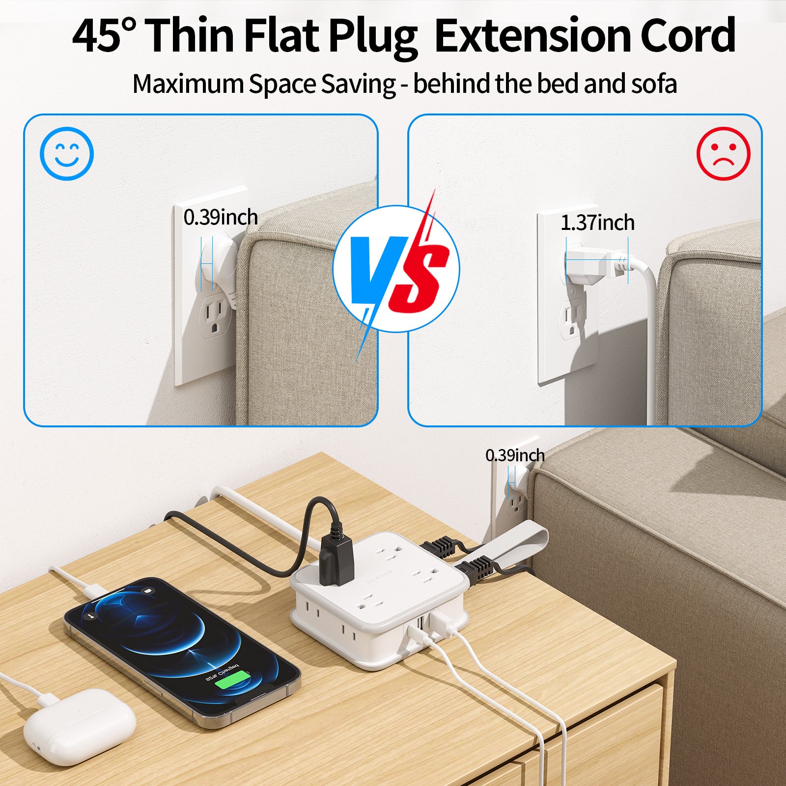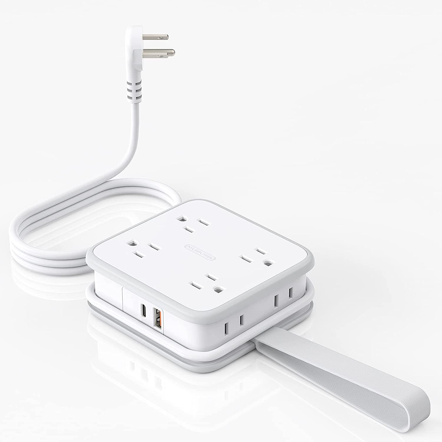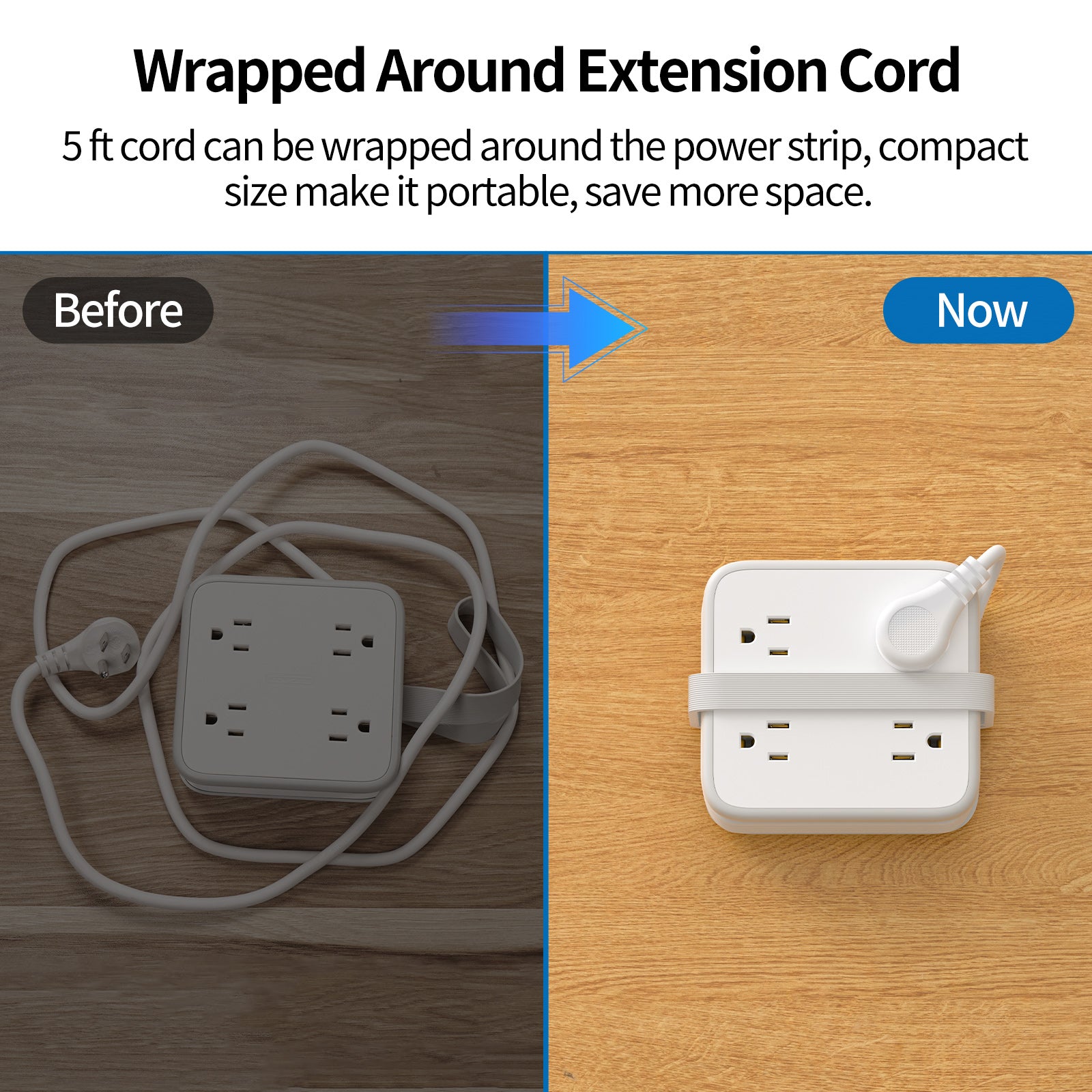 NTONPOWER Flat Plug Power Strip with Wrapped Around Extension Cord