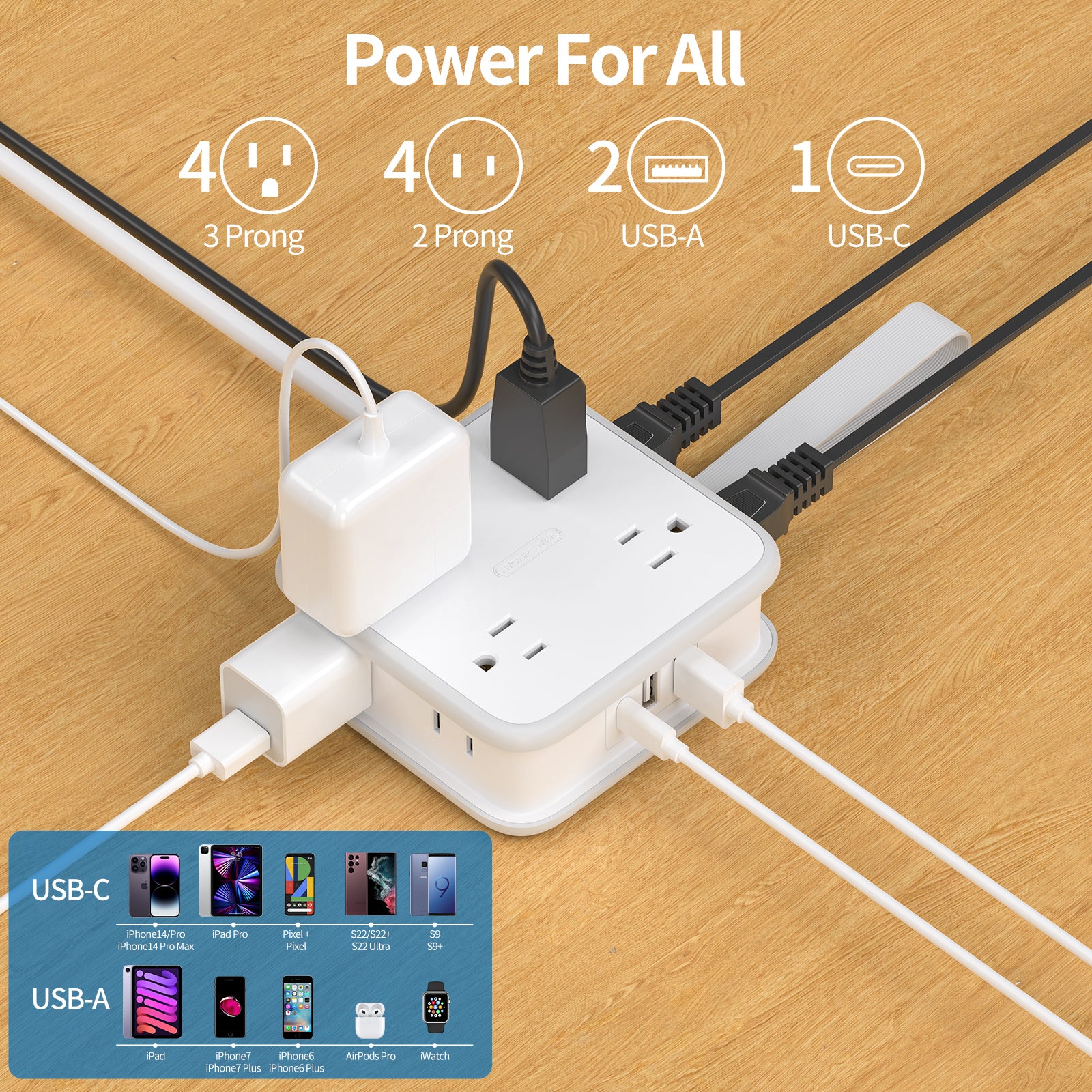 3 Side Outlet Extender - 8 Widely Outlets with 3 USB Ports