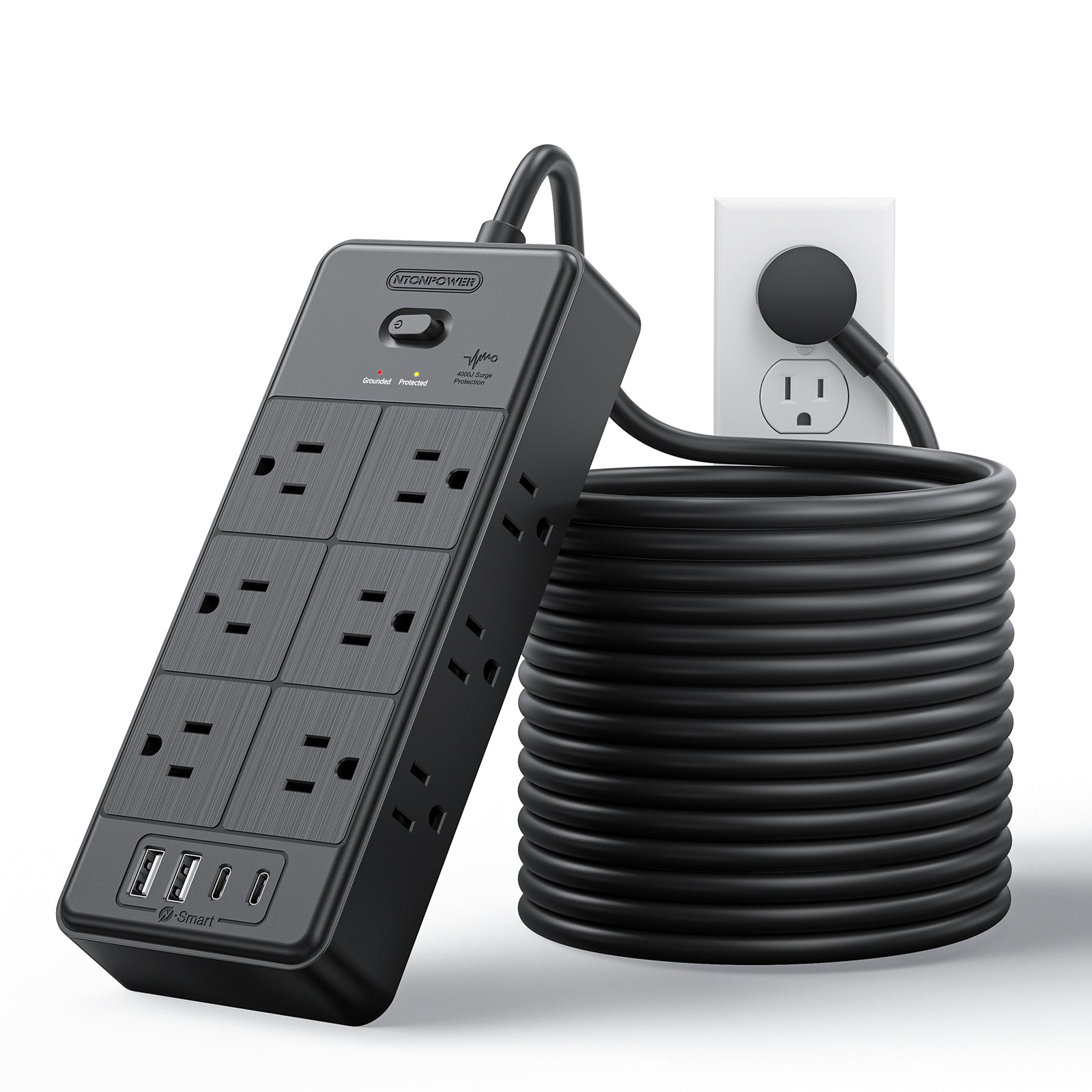 Ntonpower Surge Protector Power Strip 12 Outlets 2 USB-A 2-USB C(EAN:6941833922524)